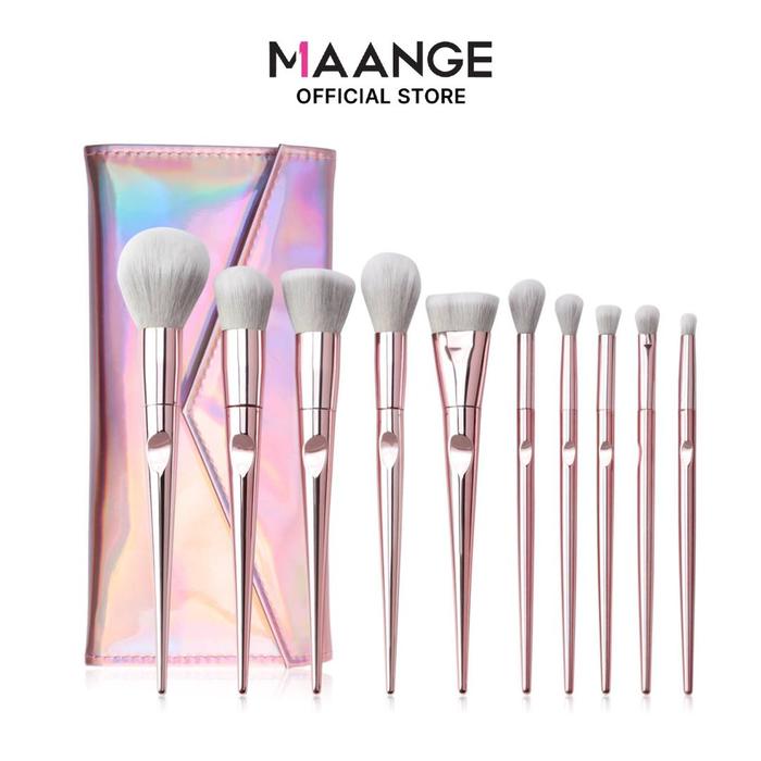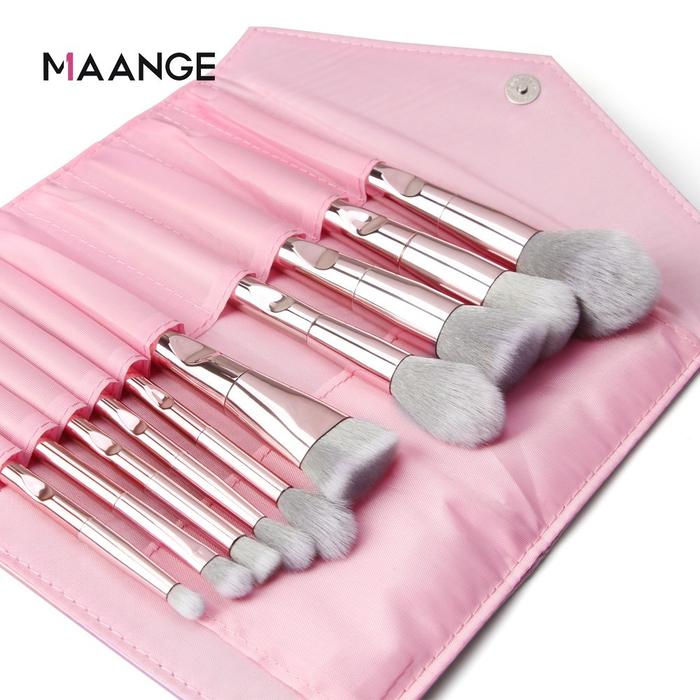 MAANGE 10 Pcs Makeup Brush Merah muda cerah with bag Kuas makeup lengkap Beauty Brush Kuas Eyeshadow Kuas Alis 5752
