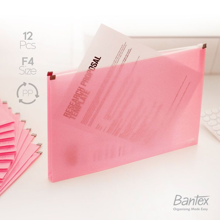 NEW 12 Pcs Bantex Map Folder Zipper Folio Plastik Bubble Gum Color Musky Pink 3222 74 unolk