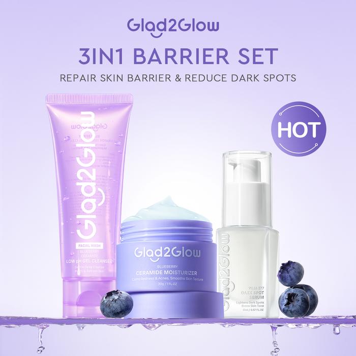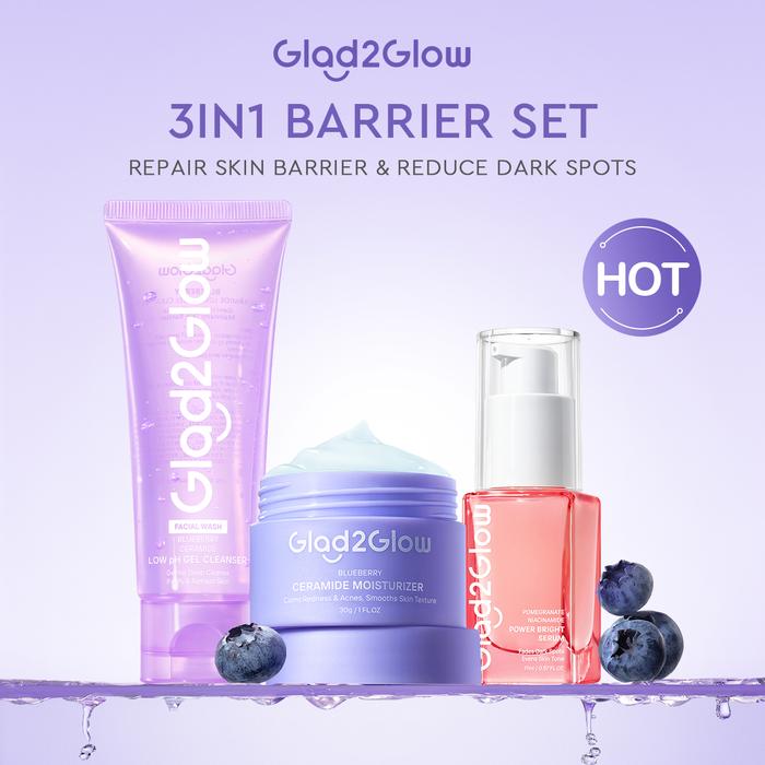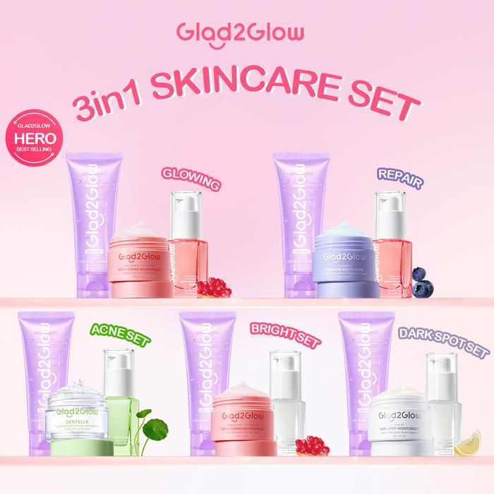 【3in1】Glad2Glow bundle 3pcs Skincare Moisturizer Face Wash Serum
