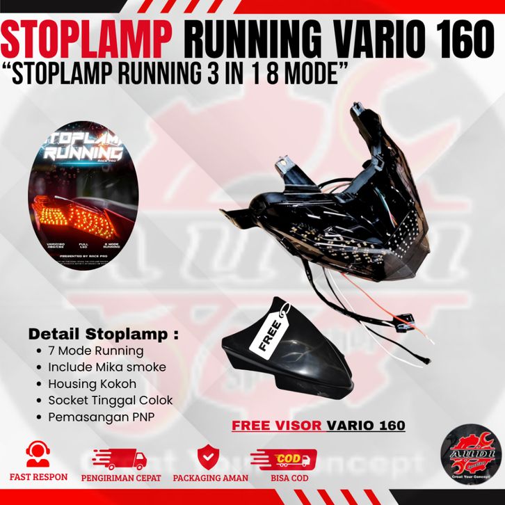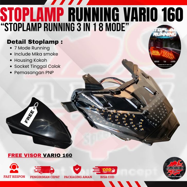 PROMO STOPLAMP VARIO 160 ABS/CBS M0DEEL RUNNING LED MERAH 8 M0DEE STOPLAMP VARIO 160 SMOKE STOPLAMP VIETNAM ORIGINAL