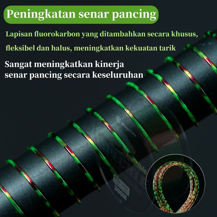 Speckle Tak Terlihat Tali Pancing 300m9radien Maroon Lanjutan Bionik Nilon Yang Dapat Berubah Warna 0.12 0.50mm Kuat