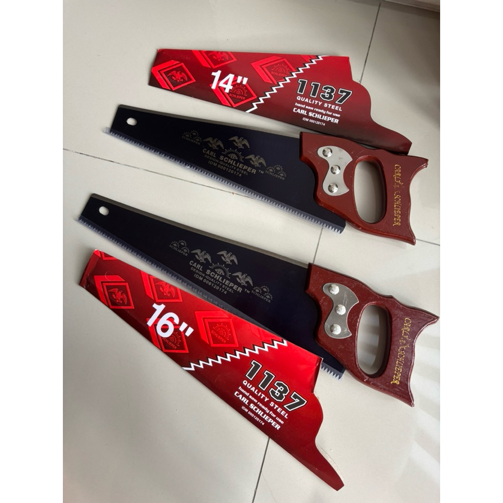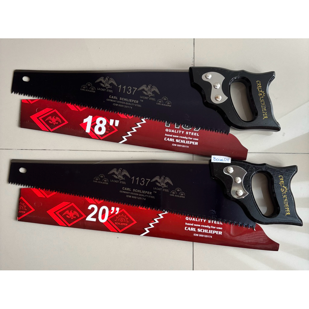 Gergaji Tangan Cap Mata Asli – Plat Hitam Tajam dan Kuat untuk Kayu, Ukuran 18 Inch & 20 Inch