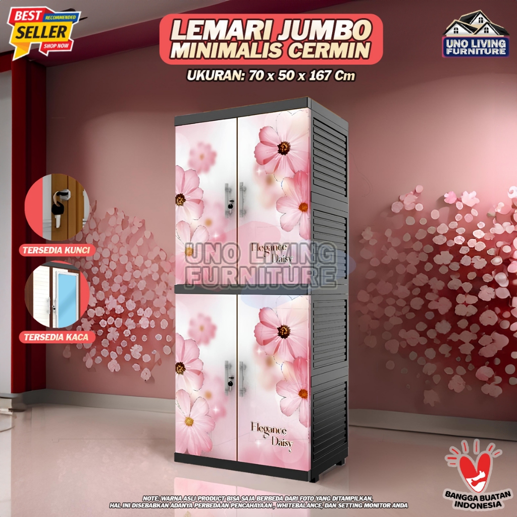 Jumbo Lemari Pakaian Plastik Naiba MSC FIT dengan Cermin Lemari Susun 4 Modern - FULL KUNCI