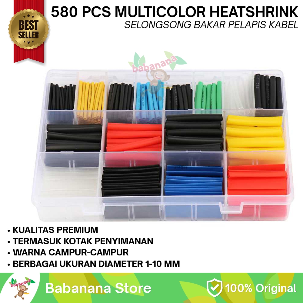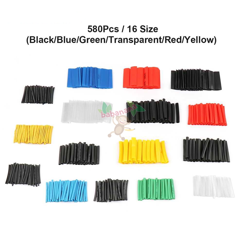 580 pcs Heat Shrink Tube Warna Warni Isolasi Bakar Selongsong Tube 580PCS Box Termasuk Kotak Penyimpanan Insulasi Heat Shrink Pelapis Kabel Protection Protector Cover
