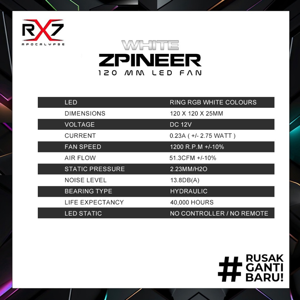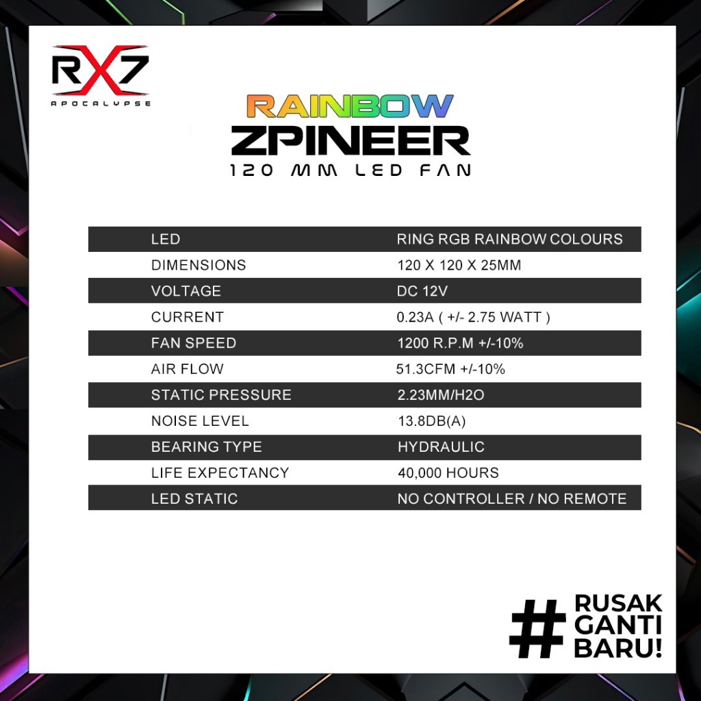 FAN RGB RX7 12CM / FAN CHASING RGB / FAN CASING 12CM FULL COLOUR
