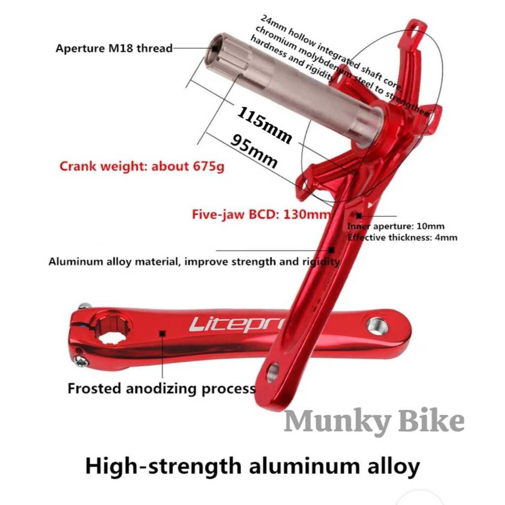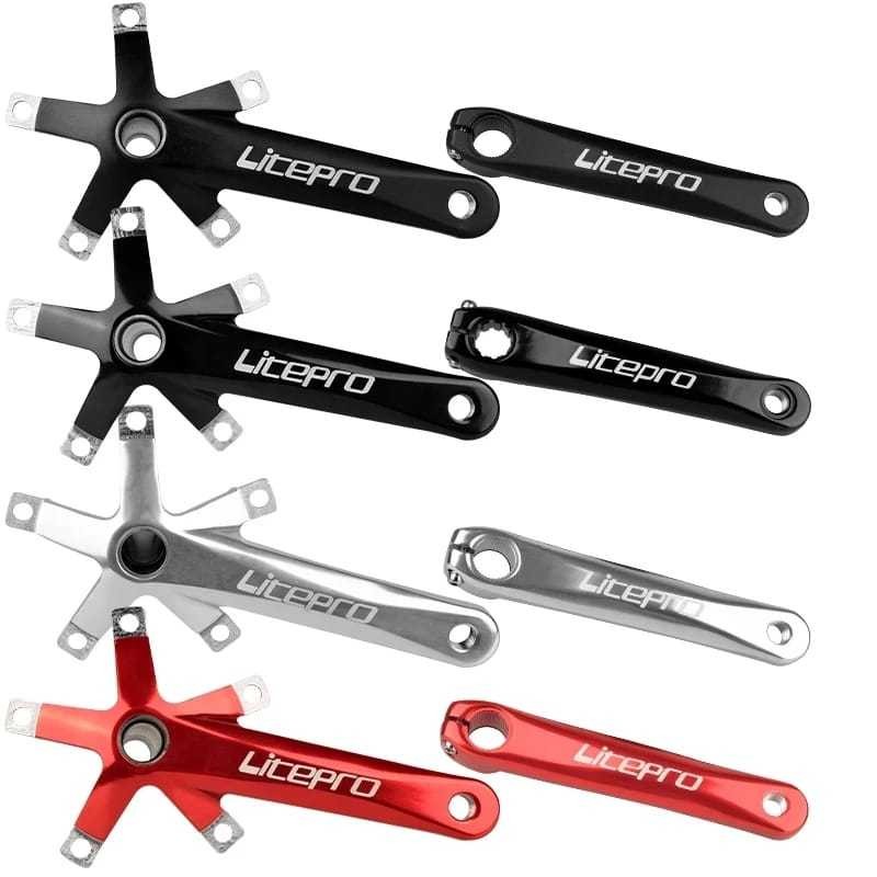 LITEPRO Crank Alloy 130 BCD, Untuk Sepeda Lipat, Termasuk BB HT2 (Hollowtech 2), Crankset Seli, Ringan dan Kuat, Upgrade