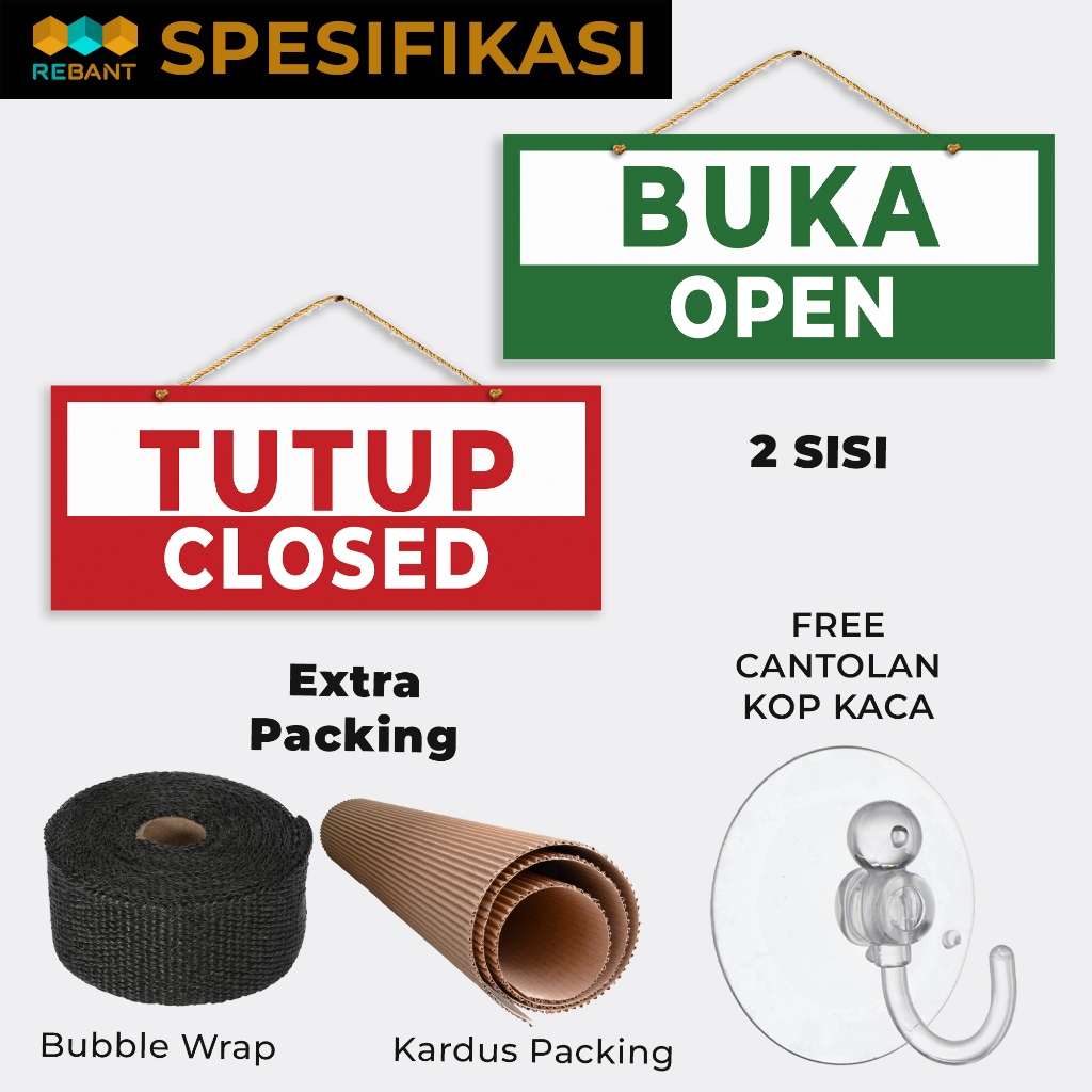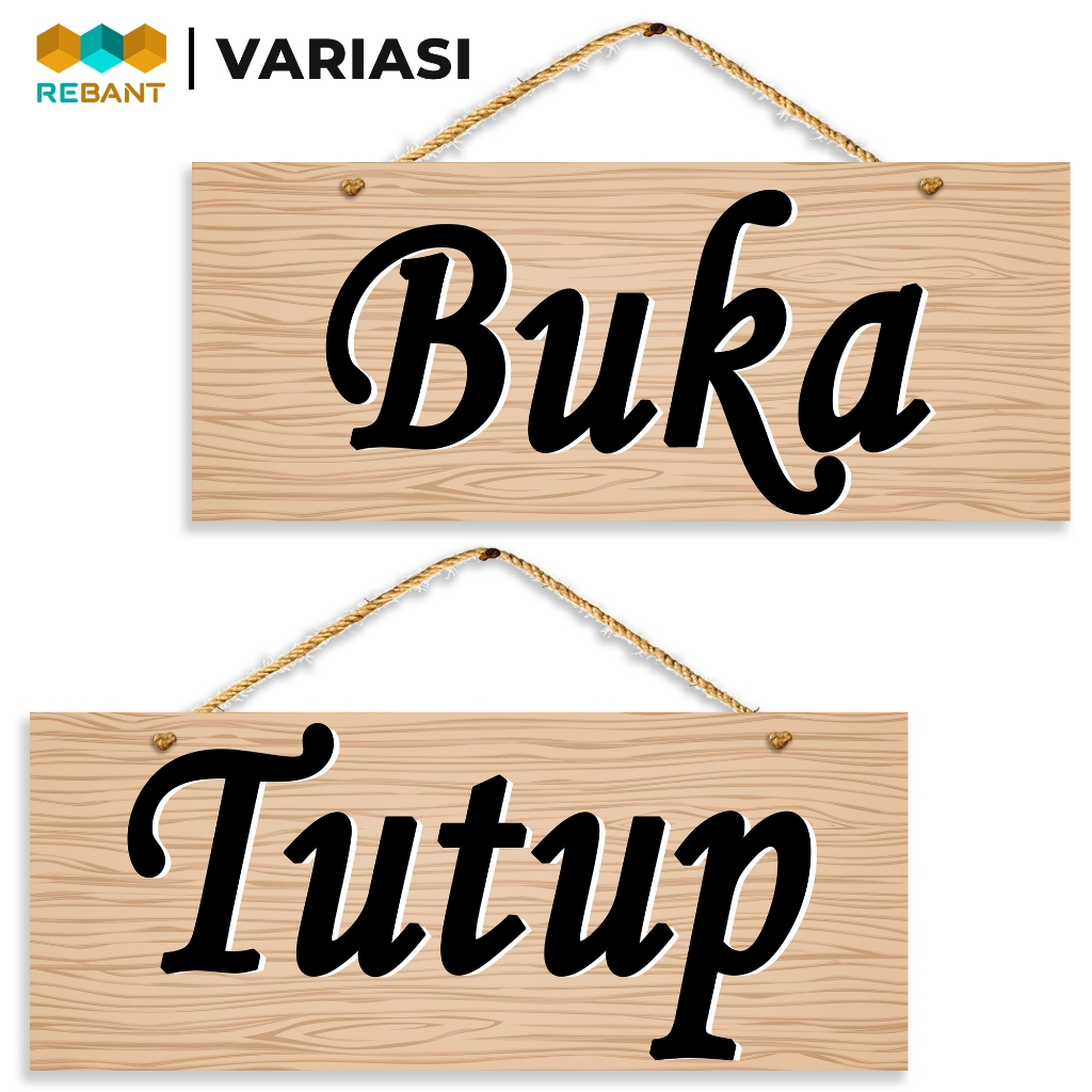 REBANT Hiasan Dinding buka tutup open closed (8x20cm) 2 sisi Pajangan papan kayu Sign Gantungan Toko Aesthetic Lucu Kere