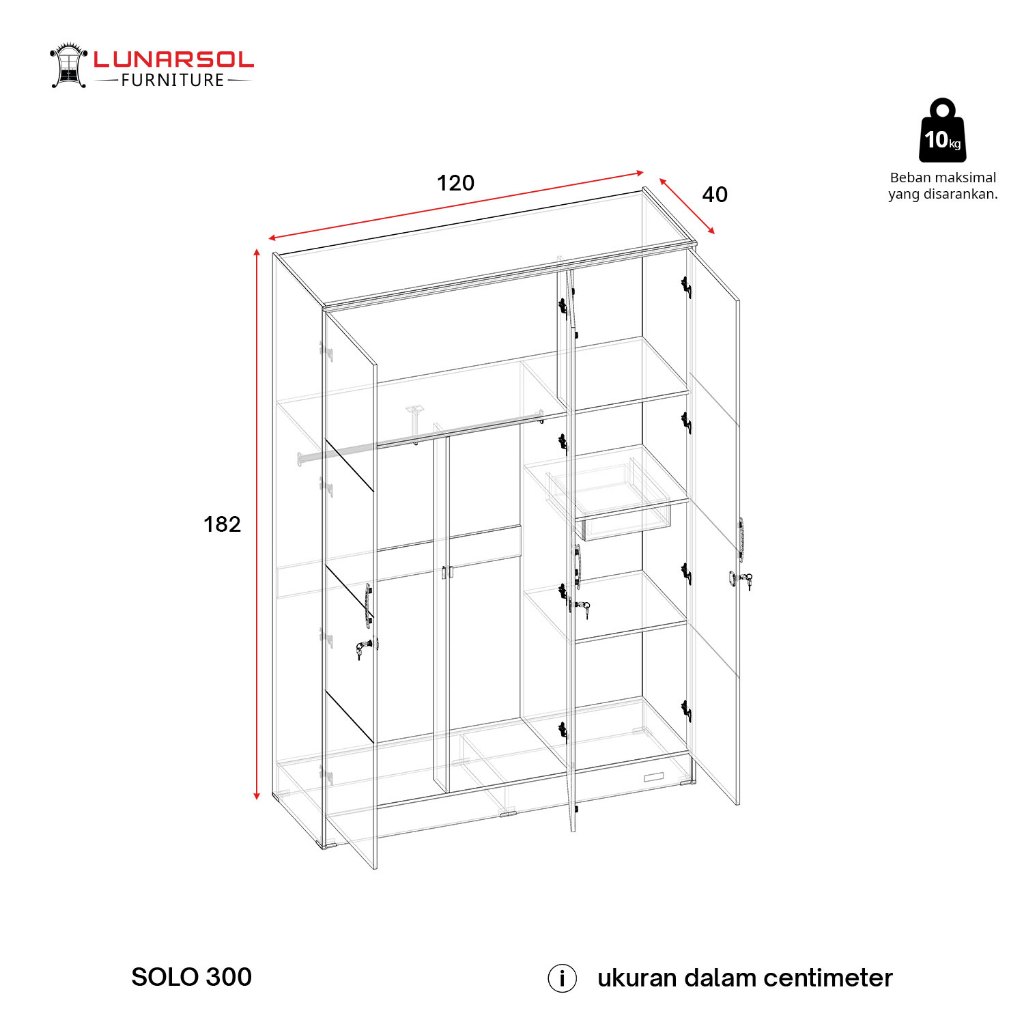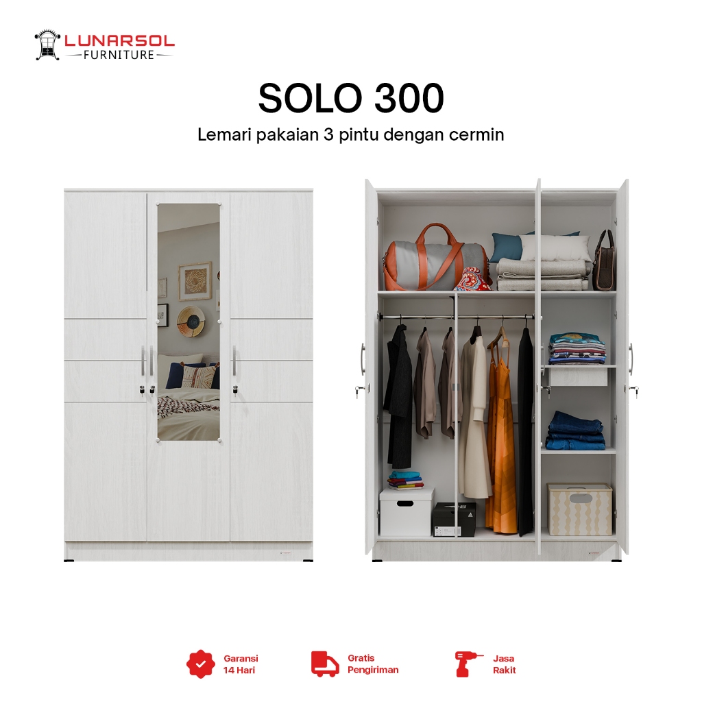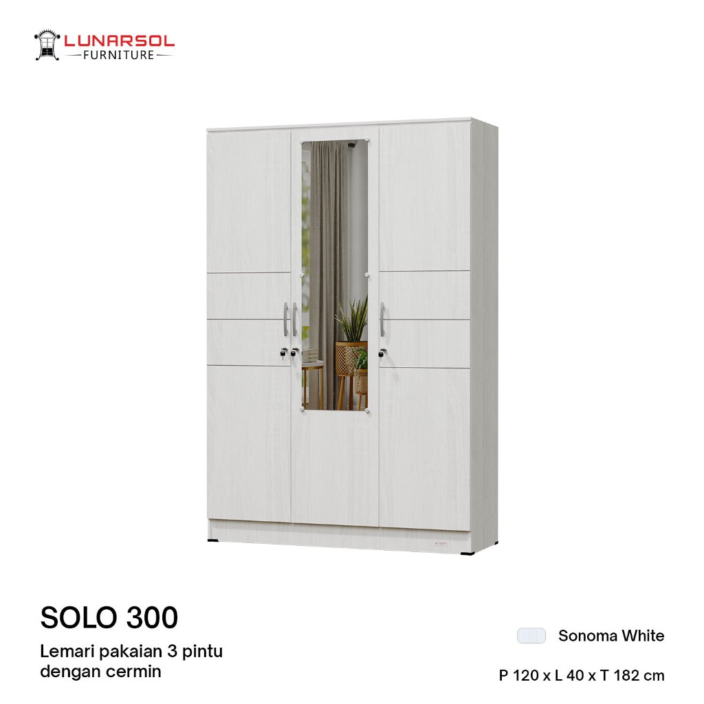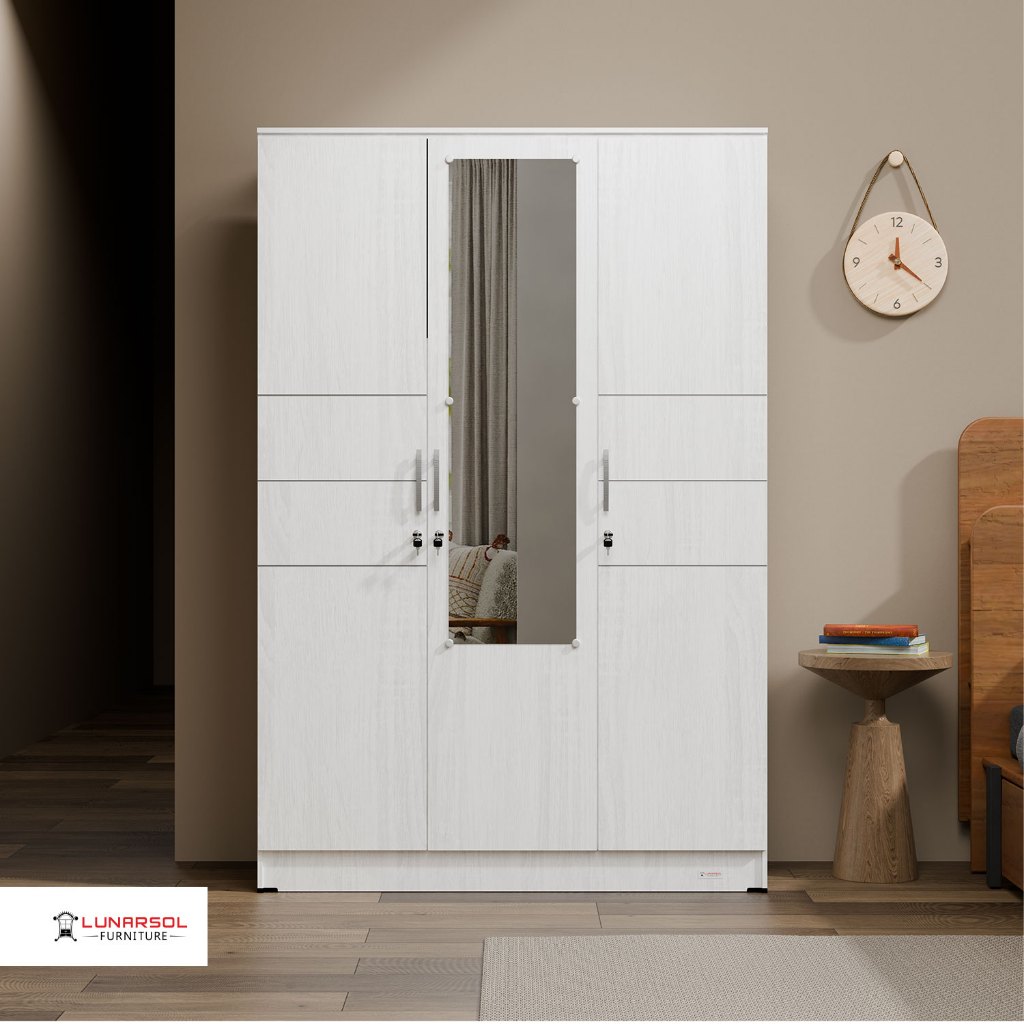 Lemari Pakaian LUNARSOL SOLO 300 3 Pintu Cermin Sonoma White | Wardrobe Minimalis Modern