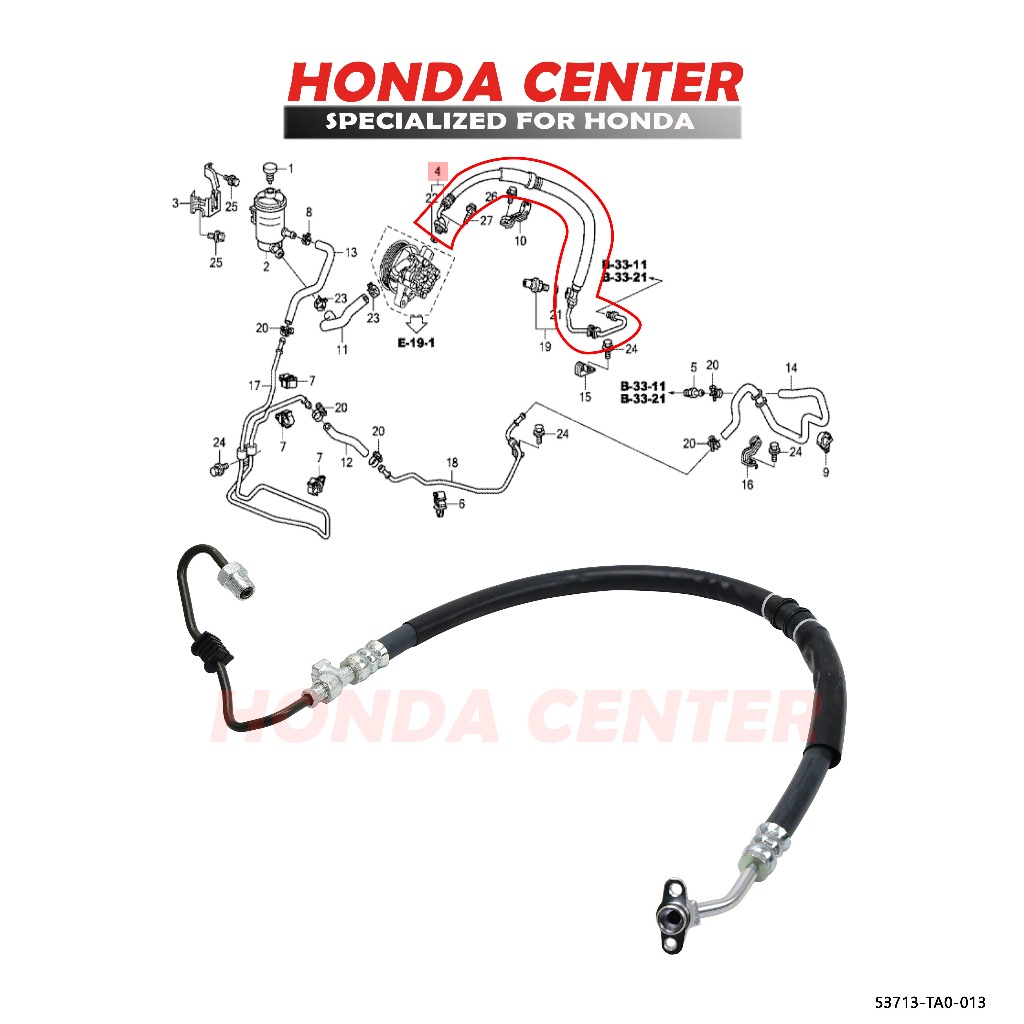 Selang Slang Power Steering High Presure Tekanan Tinggi Accord Cp2 2008 2009 2010 2011 53713-Ta0