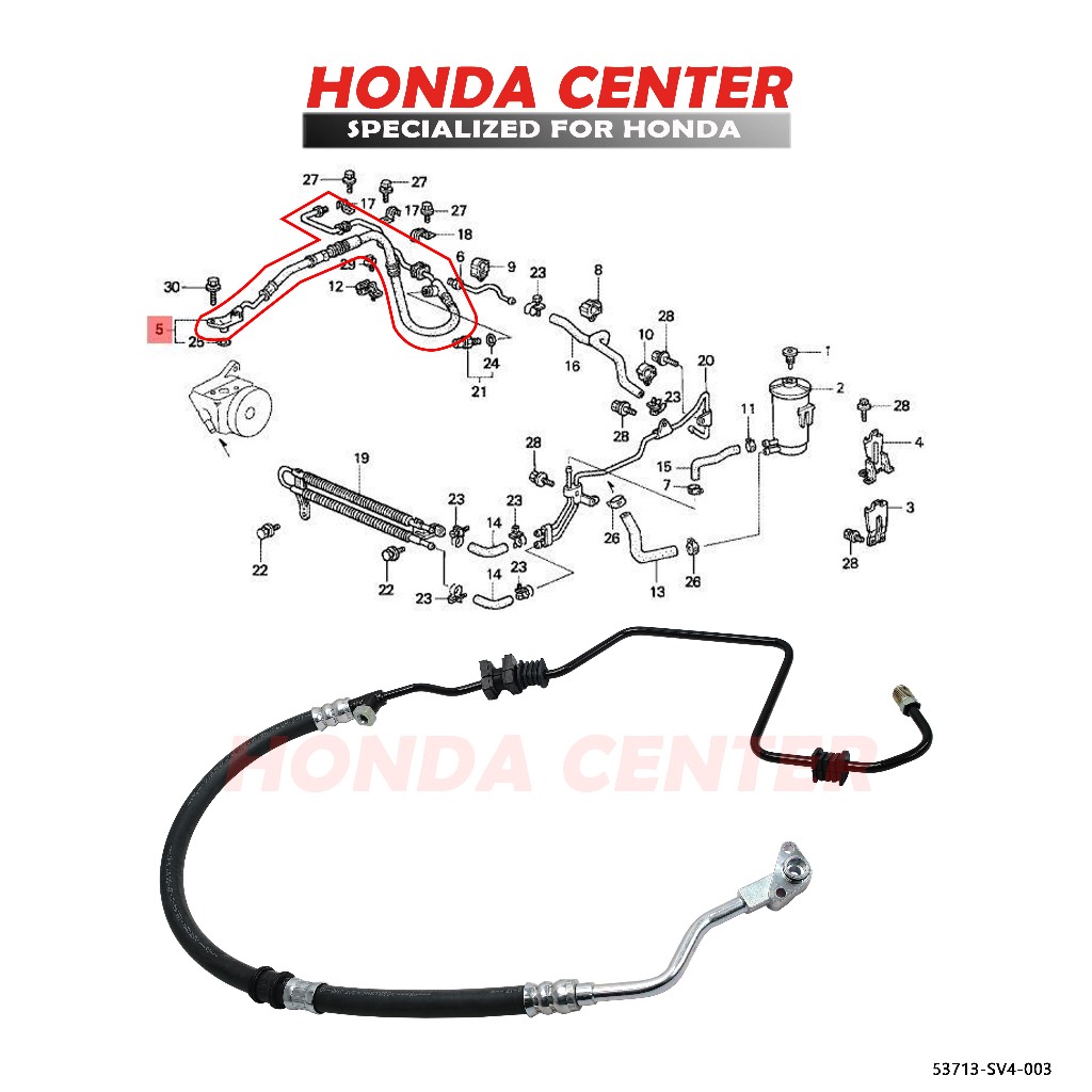 Selang Slang Hose Power Steering Tekanan Tinggi Honda Accord Cielo 1994 1995 1996 1997 53713-Sv4-013