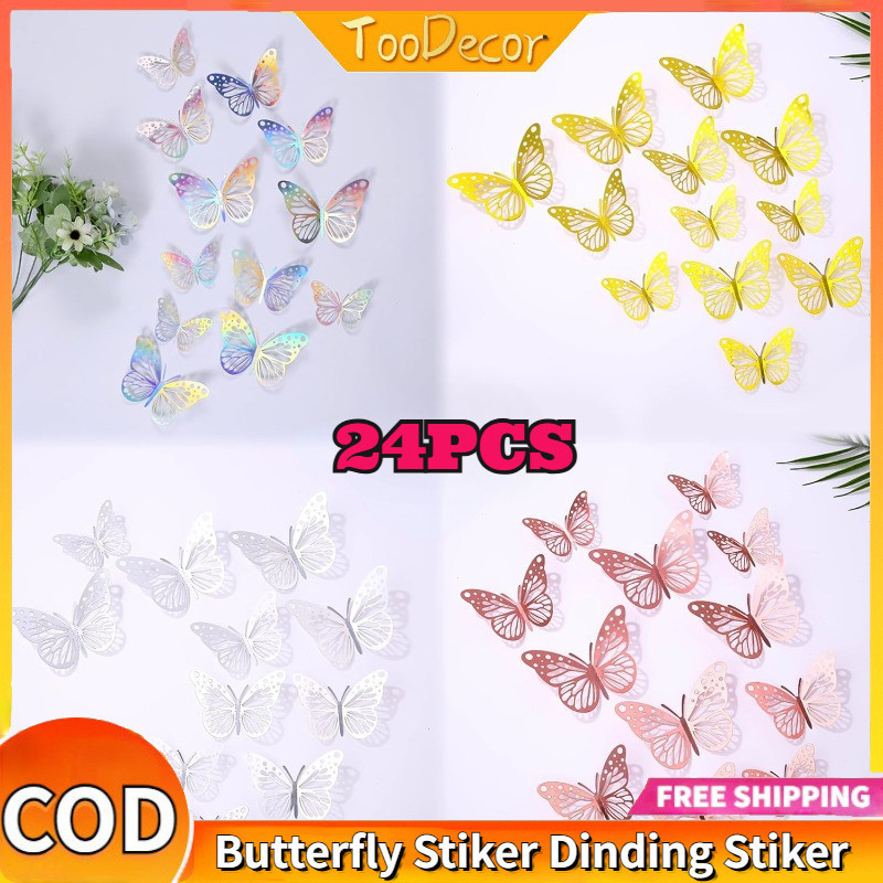 24PCS 3D Butterfly Stiker Dinding Stiker Kupu-kupu Dekorasi Stiker Dekorasi Kamar Tidur