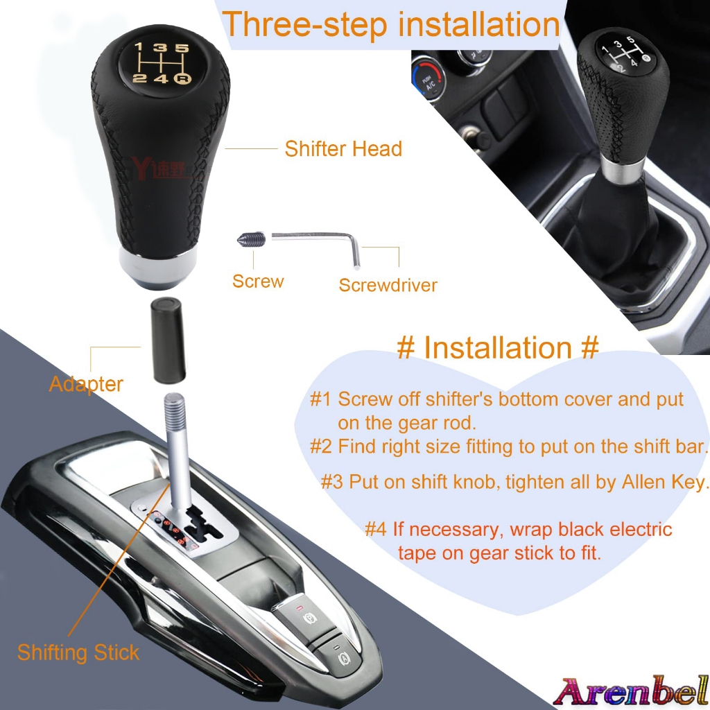 Knop Perseneling Mobil Universal 5 Kecepatan Handle Perseneling Mobil Knob Tuas Perseneling Manual Hitam Dengan Adapter