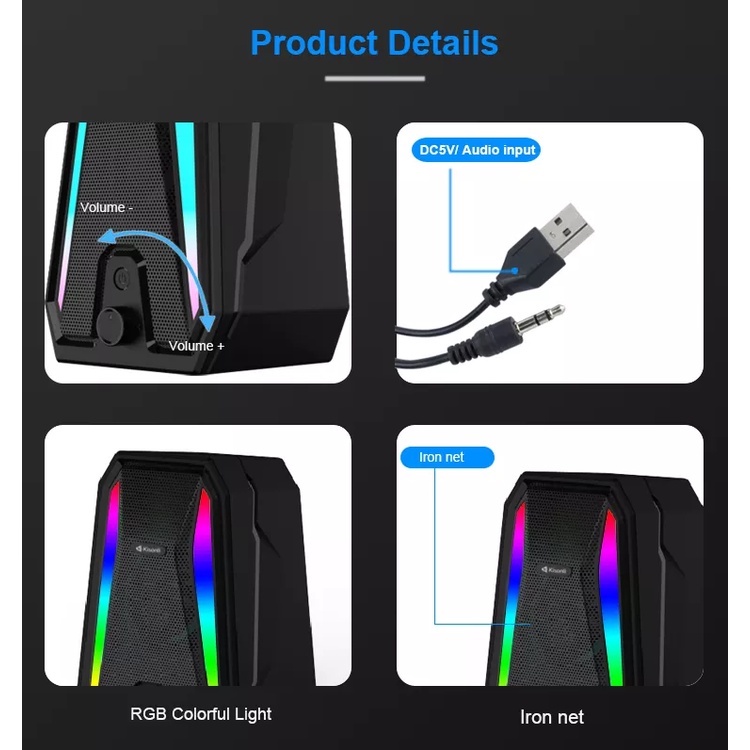 Speaker KISONLI X10 Laptop / PC / Gaming Soundbar Super Bass RGB Lighting - Garansi 1 Tahun