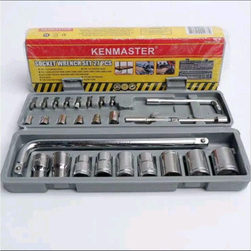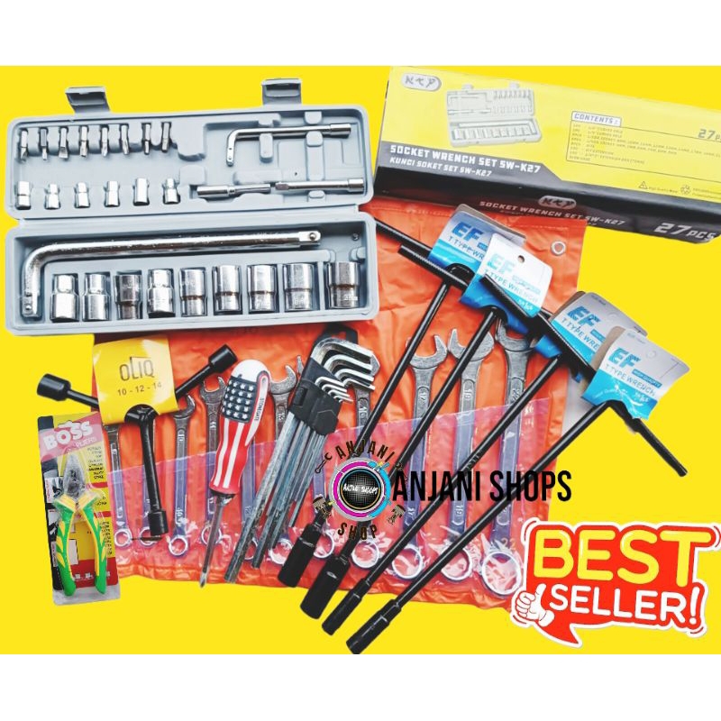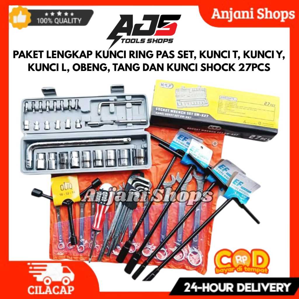 Terbaru Paket Kunci Ring Pas Set + Kunci Sock Set 27 pcs + Kunci L + 4pcs Kunci T + Kunci Y + Obeng+ tang bos