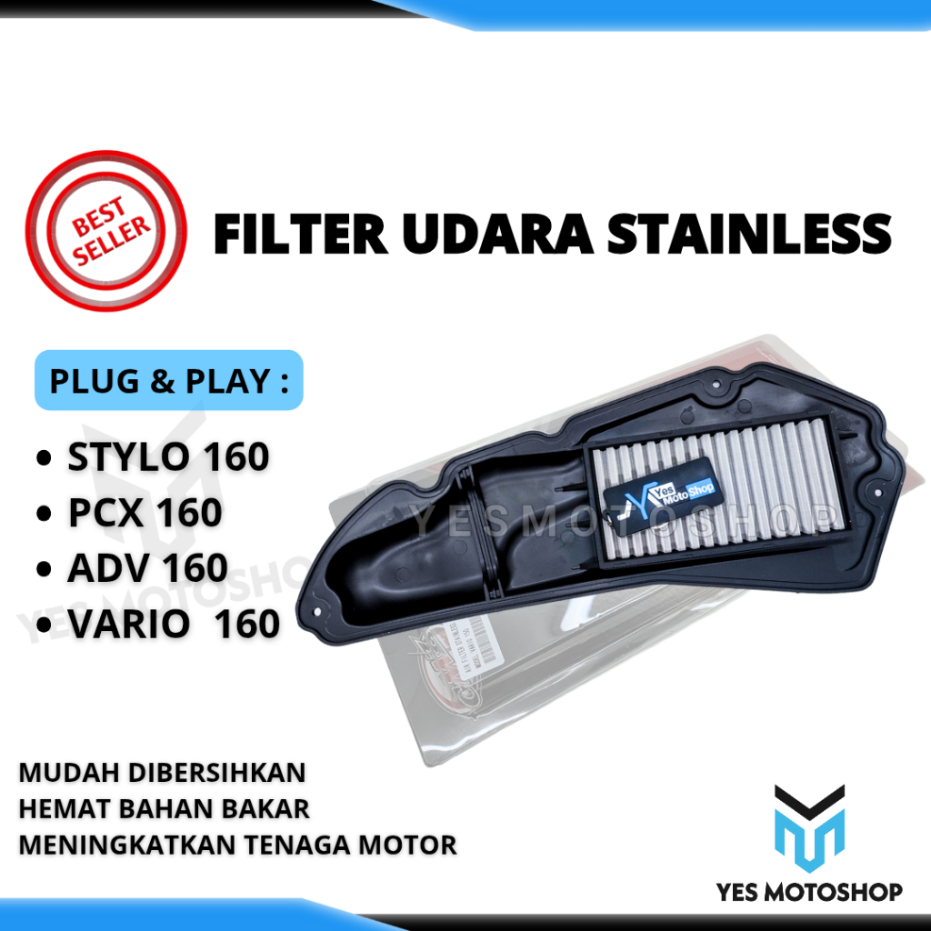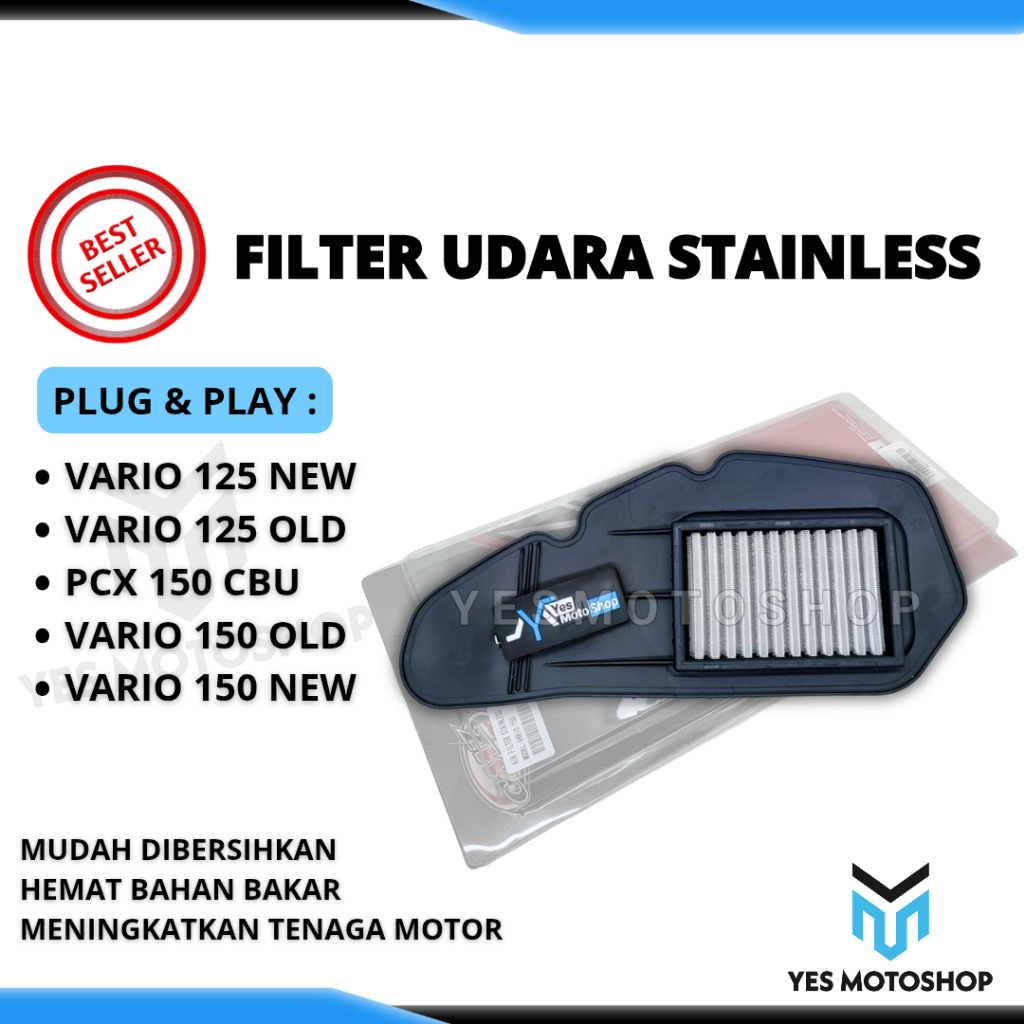 AIR FILTER UDARA STAINLESS VARIO 125 VARIO 150 PCX ADV STYLO NMAX AEROX BEAT FI MIO J LEXI SCOOPY