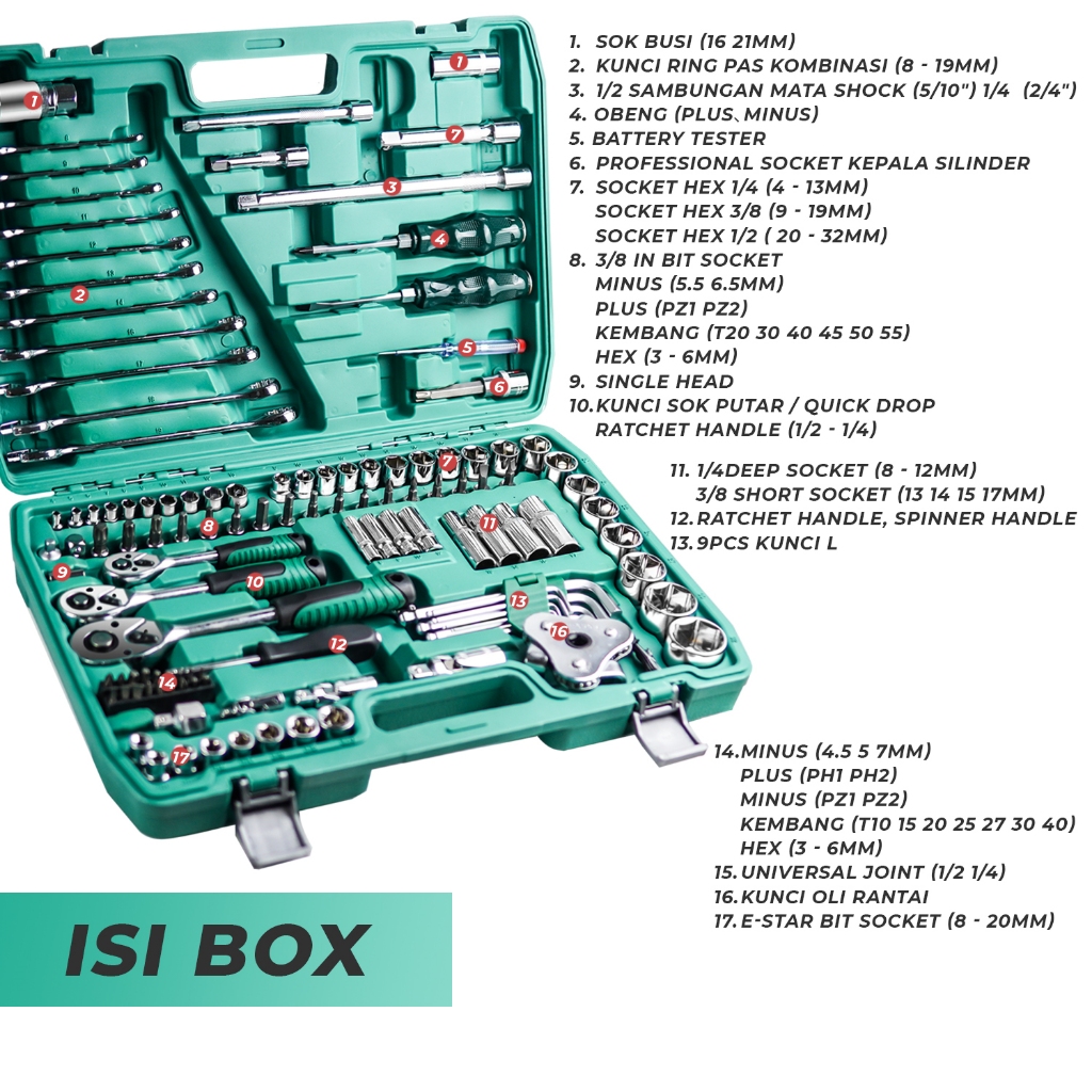 Allefix Kunci Socket Wrench Tool Kit Set 121PCS Ring Pas Wrench- 6740