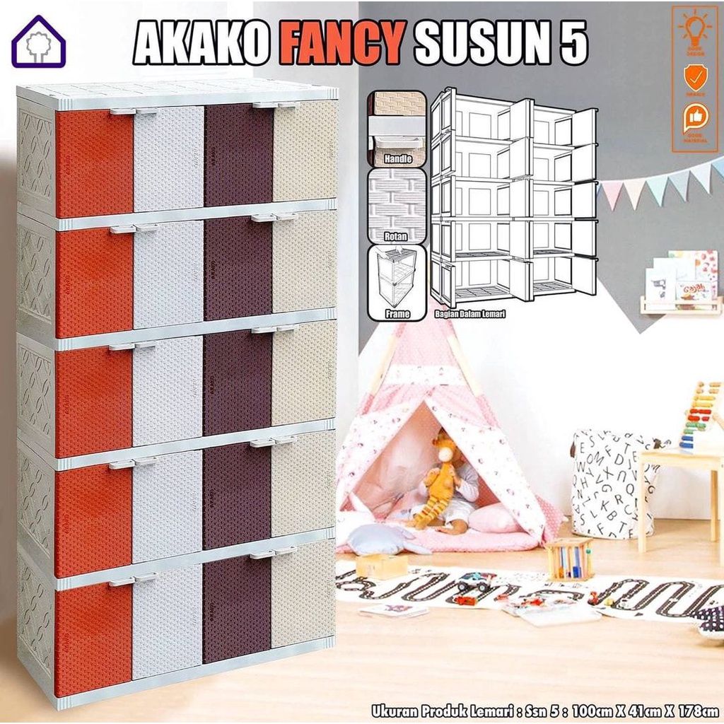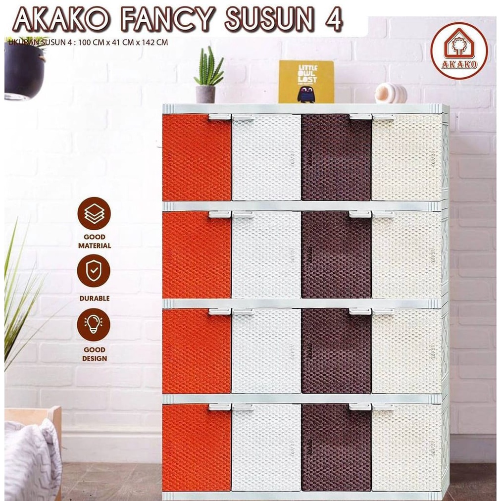 LEMARI AKAKO FANCY 16 PINTU PLASTIK 4 SUSUN MOTIF ROTAN SERBAGUNA TERBARU 2025