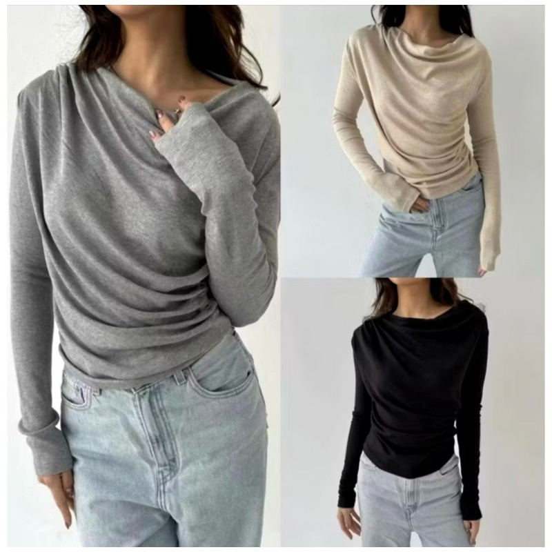 APRIL TOP PREMIUM / atasan casual basic rib wanita lengan panjang