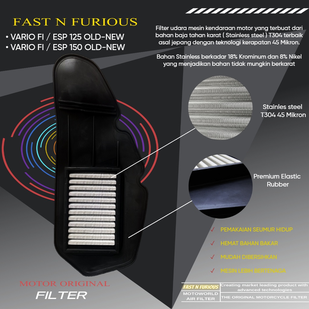 Filter Udara Stainless Saringan Udara Vario Fi ESP 125 150 Original Fast N Furious
