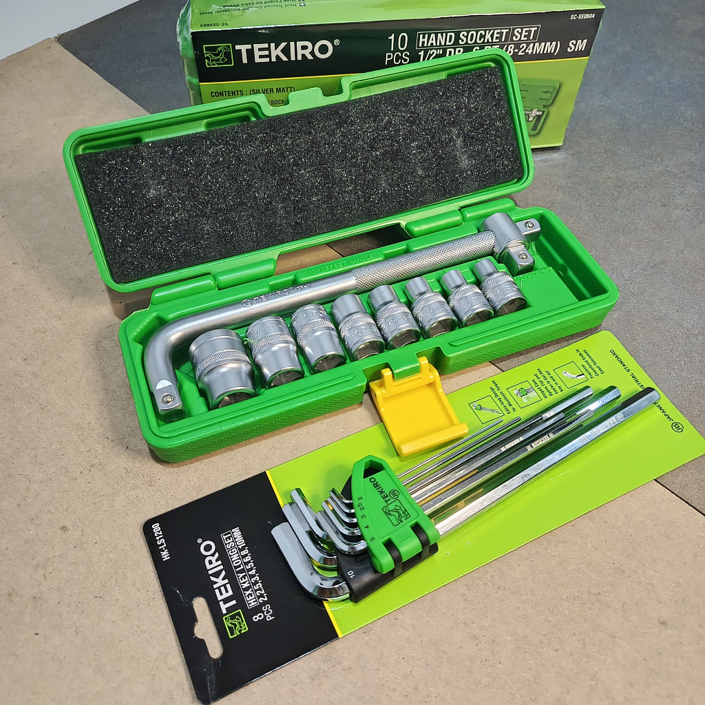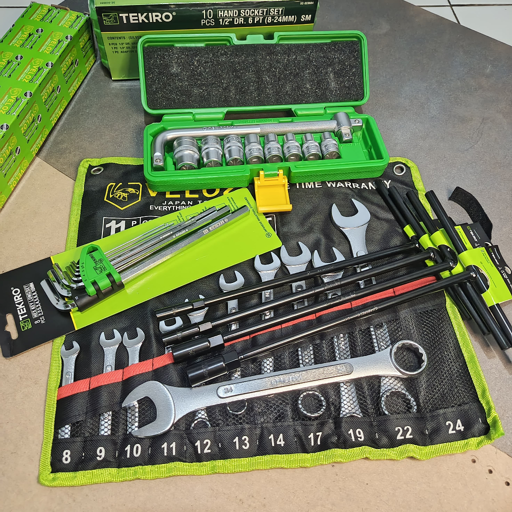 TEKIRO PAKET KUNCI BENGKEL 1 SET LENGKAP FULL SET / Kunci Shock ( 8 - 24 Mm ) + Ring Pas Set ( 8 - 24 Mm ) + Kunci T Set