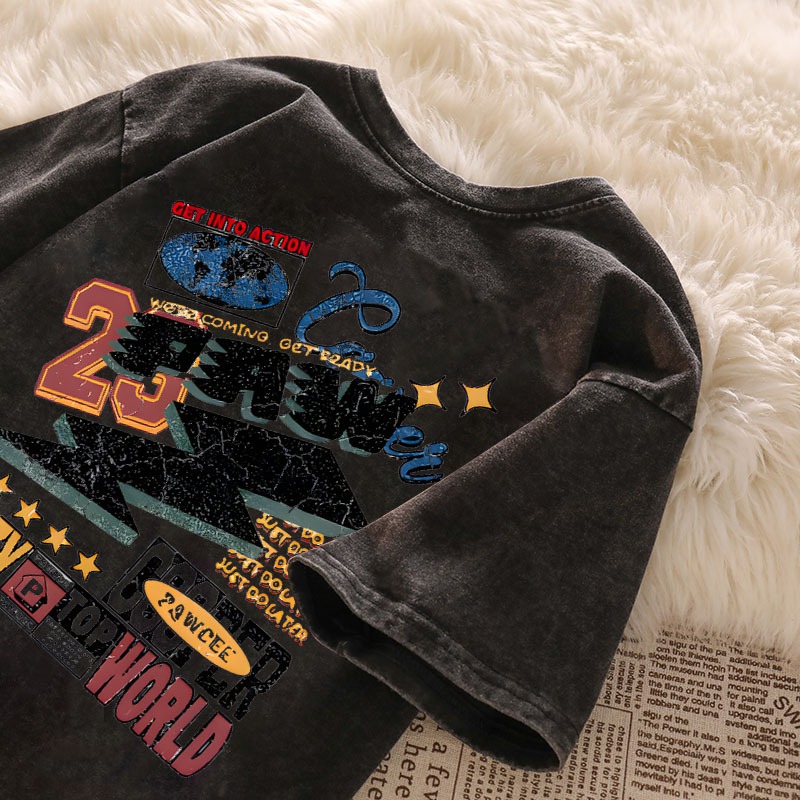 BOOMBAP American retro Style T-shirt Oversize Carzy World Print top| Kaos Wanita Putih | Kaos pria dan wanita | Street S