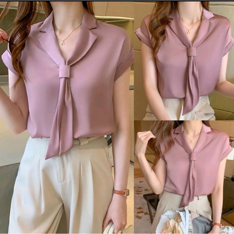 BLOUSE ATASAN WANITA STYLE KOREA MODEL HYESUN - Shakilla - Blouse Korean - Blouse Dasy - Bahan Lembut - Basic Polos Bang
