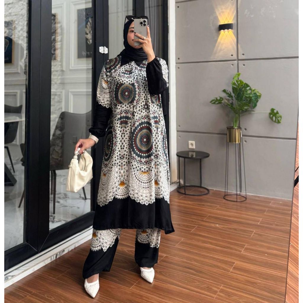 Raya set tunik rayon motif one set tunik jumbo setelan rayon motif