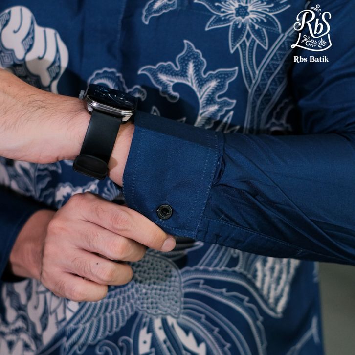 RBS Batik - Kemeja Batik Pria Gumantama Slimfit Lapis Furing Biru Cream Motif Cendrawasih – Batik Modern Slimfit Kondang