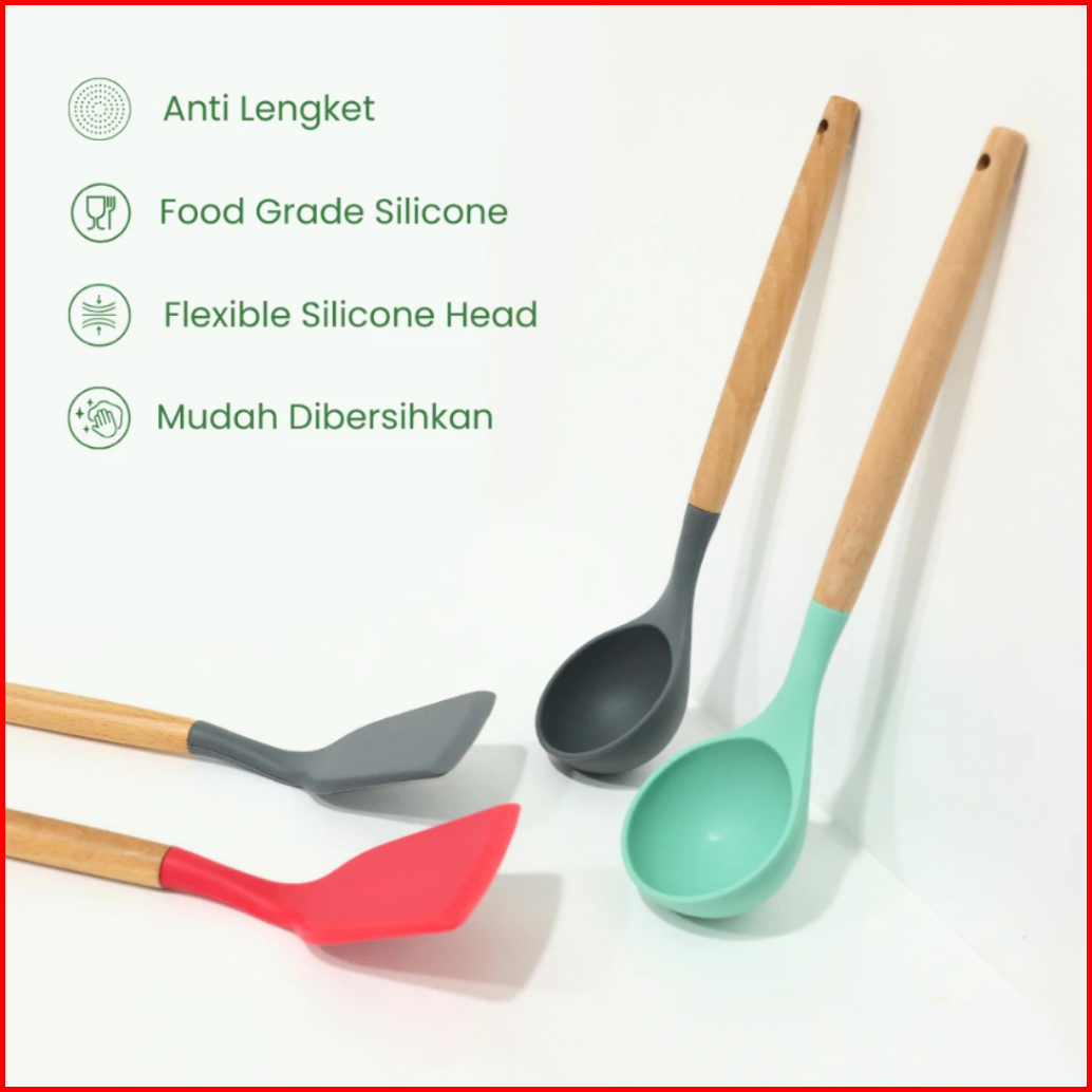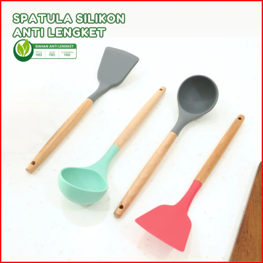 Funkoo Set Spatula Dan Centong Sayur Silikon Anti Lengket Sutil Silikon Soup Ladle Silicone