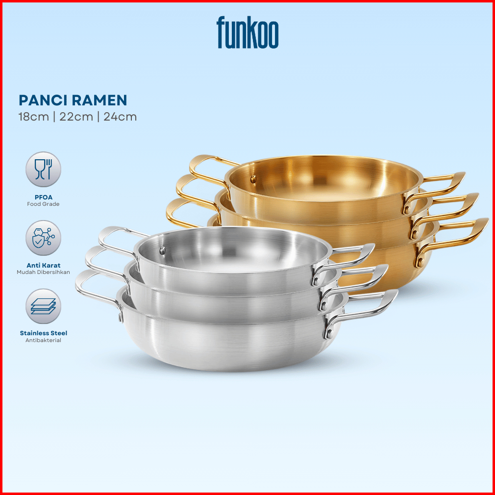 Funkoo Panci Silver Korean Bahan Stainless Steel Tebal Wajan Rebus Mie Sop Korea Premium