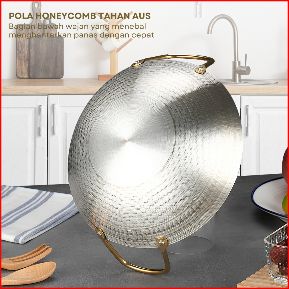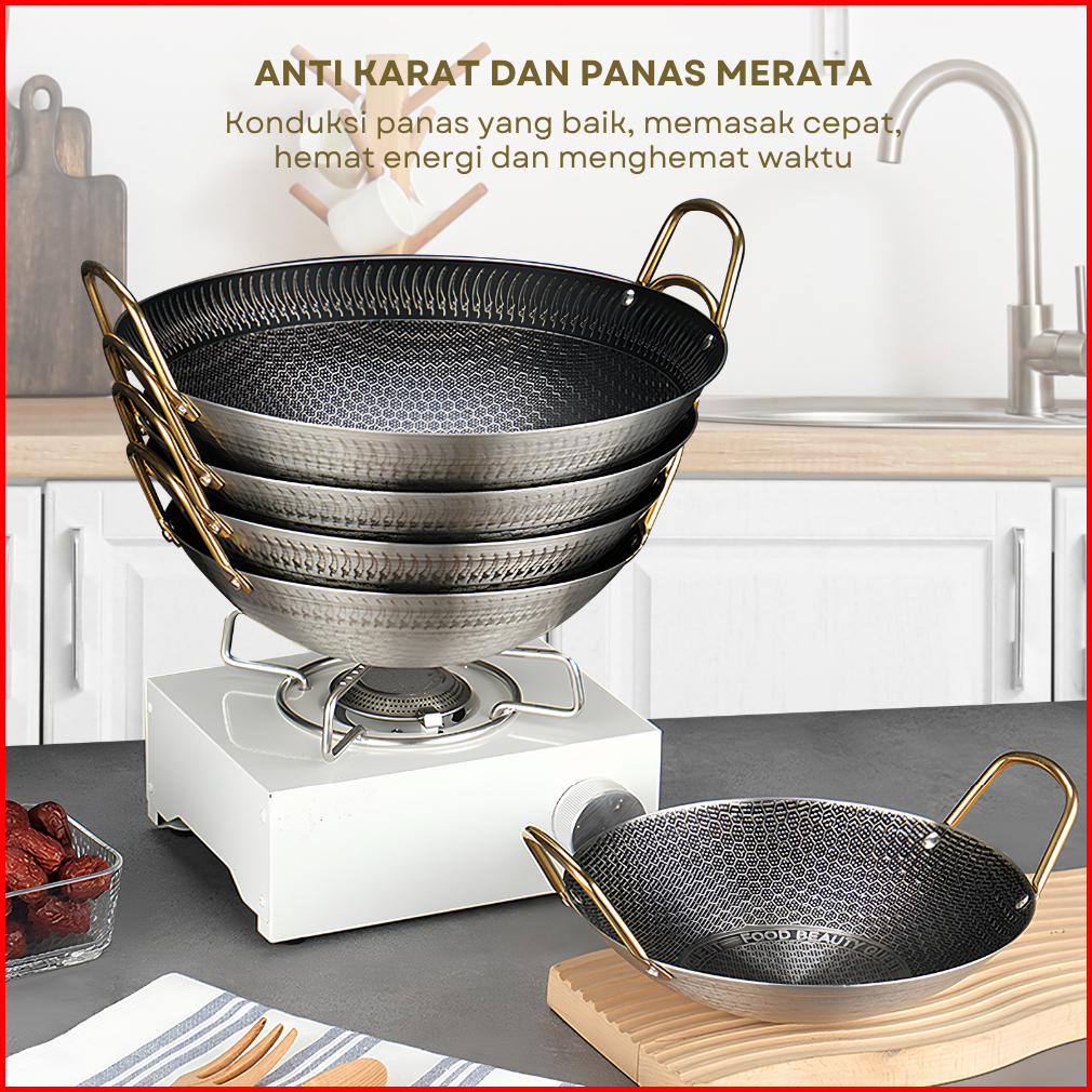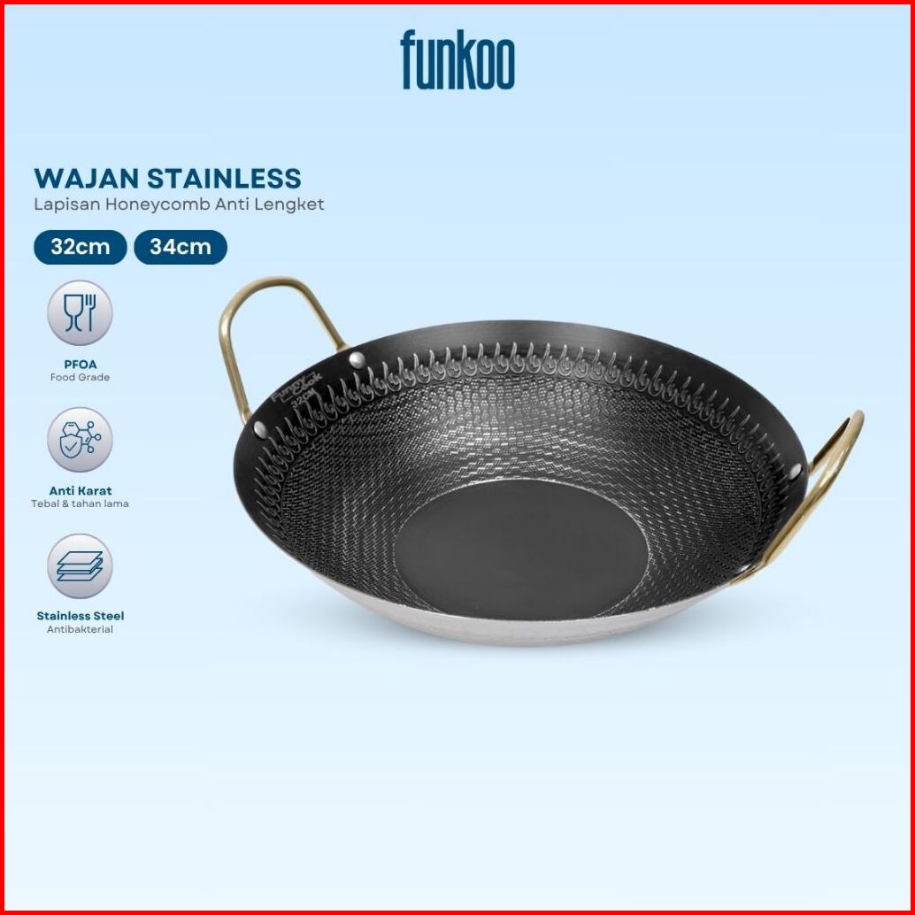 Funkoo Wajan Stainless Anti Lengket Wajan Premium Ukuran 32cm 34cm Kuali Stainless Serbaguna