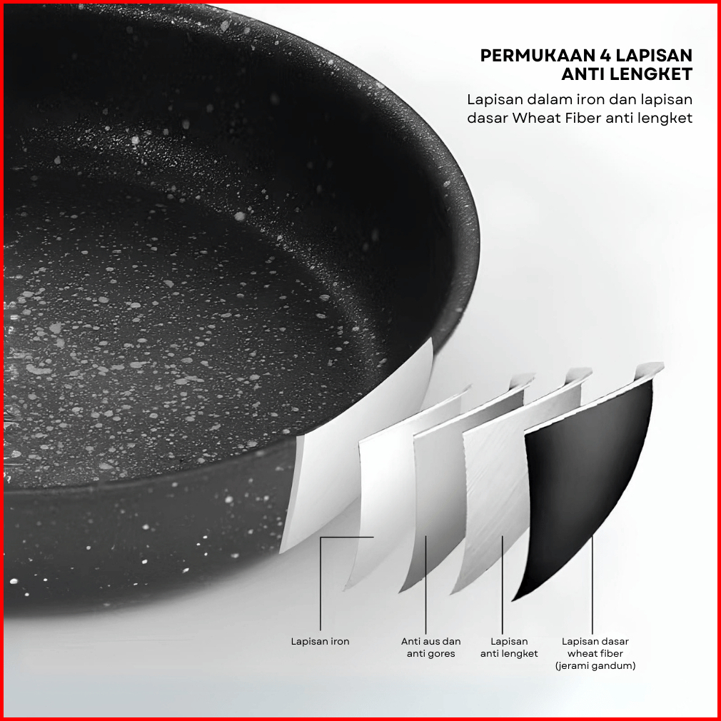 Funkoo Sauce Pan Panci Anti Lengket 3pcs Gagang Anti Panas Estetik Ukuran 12cm 16cm 20cm Bahan Iron