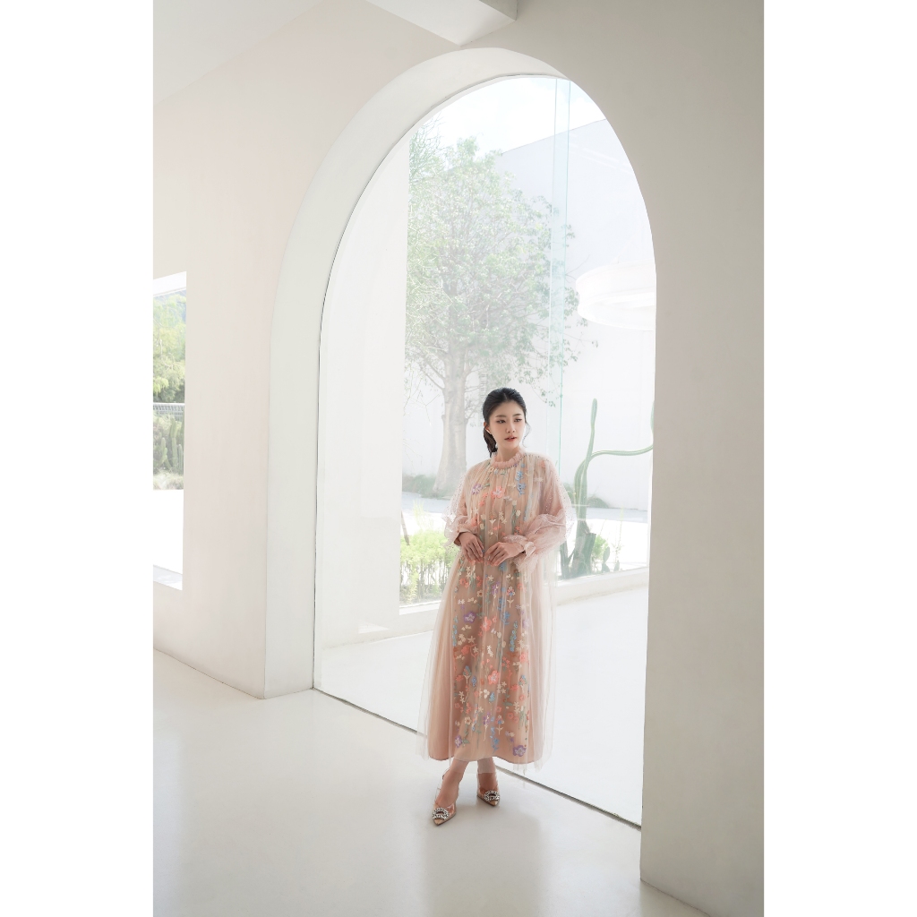 AURA LABEL ROSEANNA DRESS SOFT PEACH HIJAB FRIENDLY A LINE