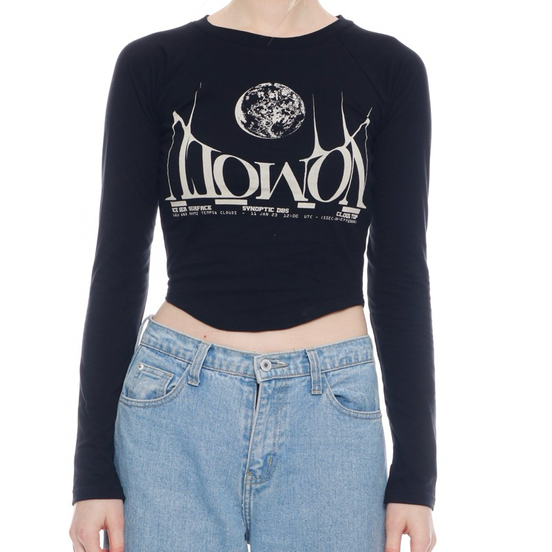 NOMOLU - Crop Top Long Sleeve Kaos Wanita Vol.013 Moon