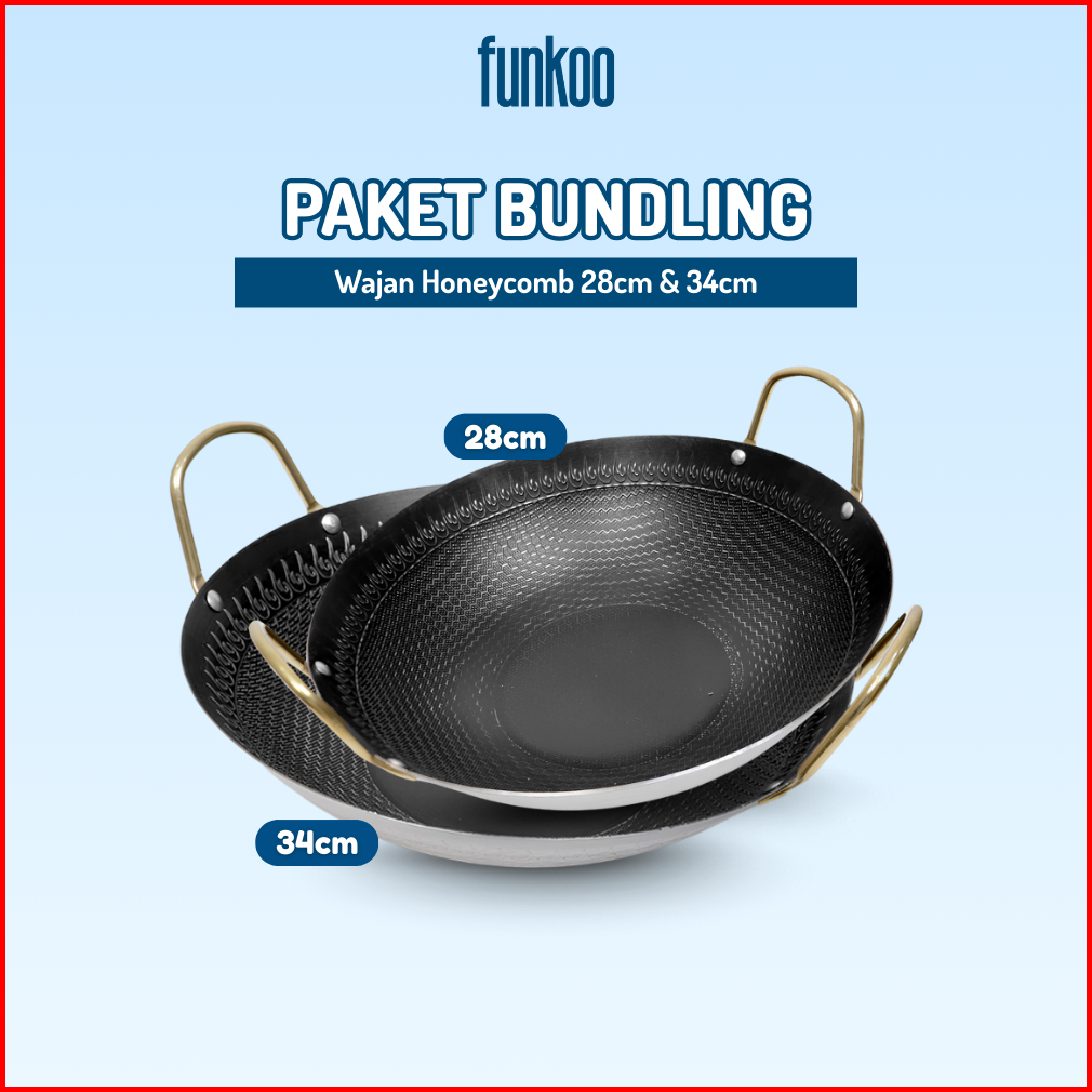 Paket Blunding Funkoo Wajan Stainless Hitam Motif Sarang Lebah Anti Lengket Ukuran 28cm Dan 34cm