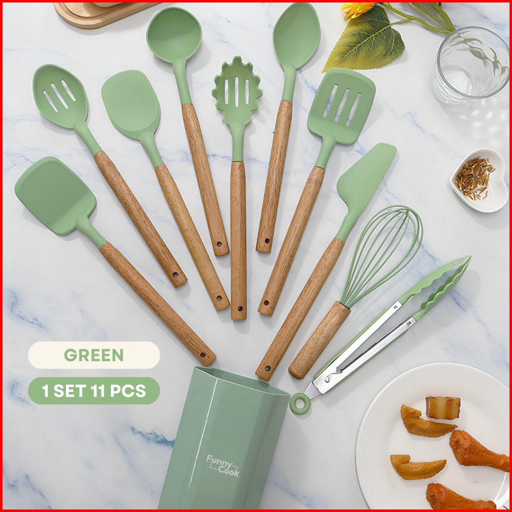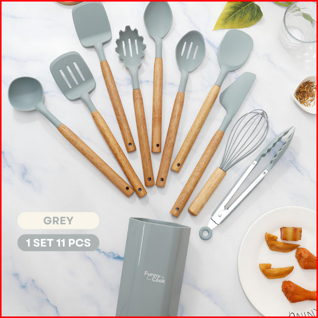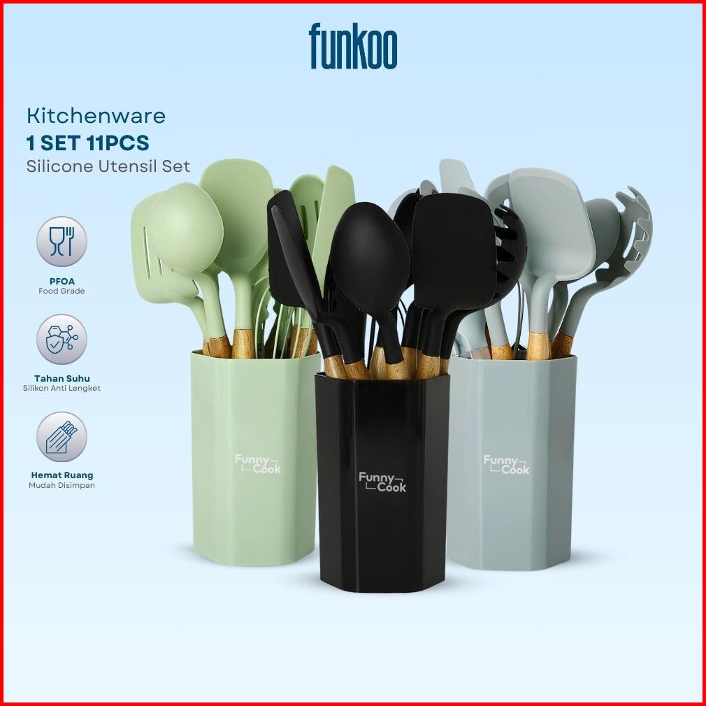 Funkoo 11in1 Silicone Utensil Set Peralatan Dapur Set Spatula Pengocok Telur Sendok Sekop Wadah