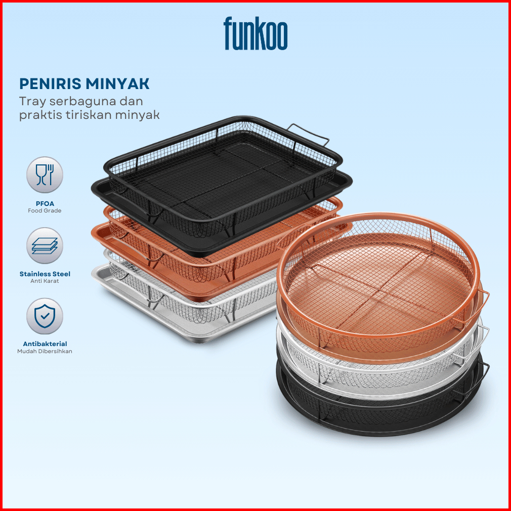 Funkoo Peniris Minyak Cooper Crisper Tray Fika Saringan Minyak Gorengan Bulat Dan Persegi
