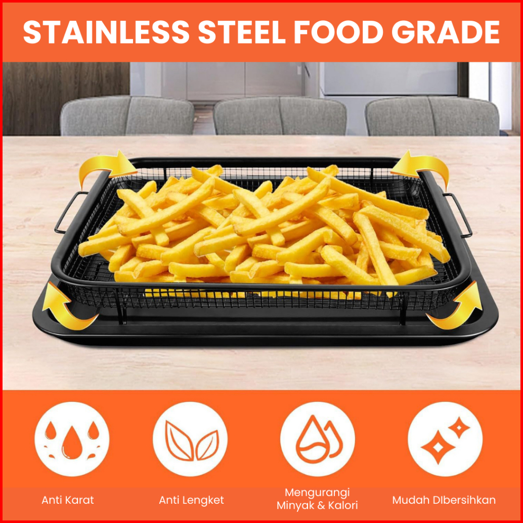 Funkoo Black Saringan Minyak Set Wadah Tempat Peniris Minyak Cooling Rack Baking Tray