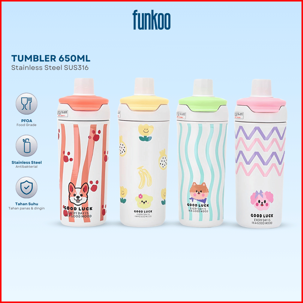 Funkoo Tumbler 650ml Stainless Aesthetic Botol Minum Lucu Anti Tumpah Dan Tahan Panas Dan Dingin