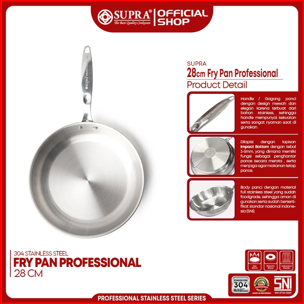Supra Panci Wajan Penggorengan Stainless Steel Sus 304 Frypan 28 Cm Professional Series