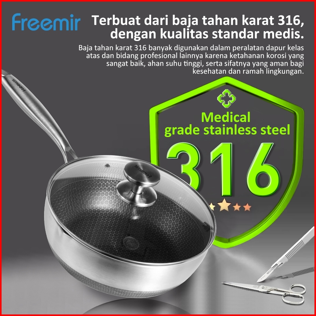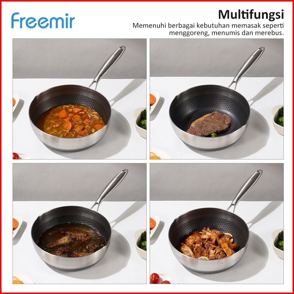Special New 2025 Freemir Wajan Penggorengan Premium Stainless Steel Sus 304 Foodgrade Anti Karat Wajan Stainless Steel