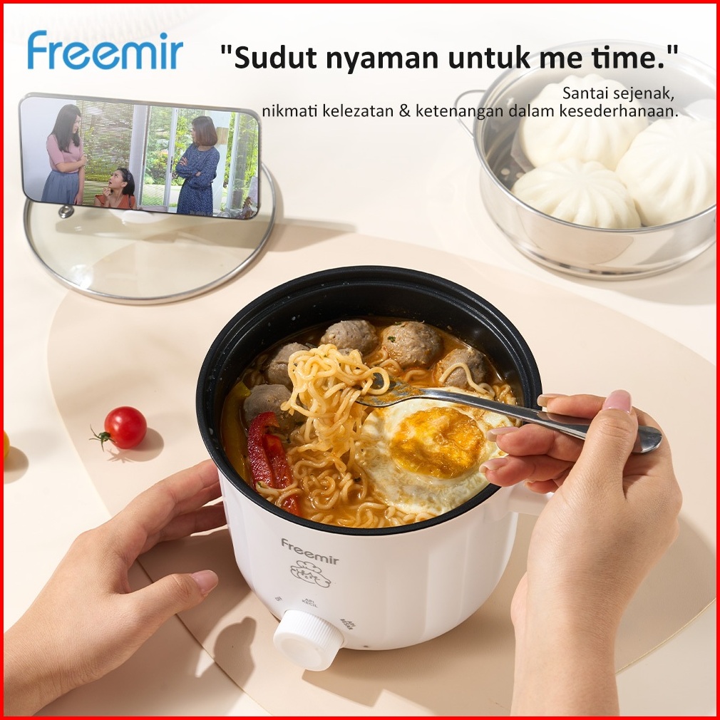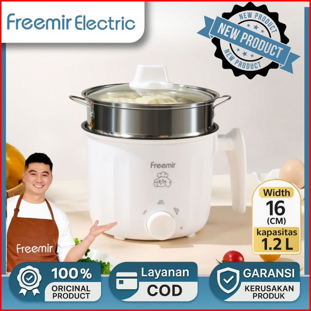 Deals Freemir Electric Panci Kukusan Listrik Multifungsi Multicooker Low Watt Stainless Steel Anti Karat 1.2 Liter 17cm