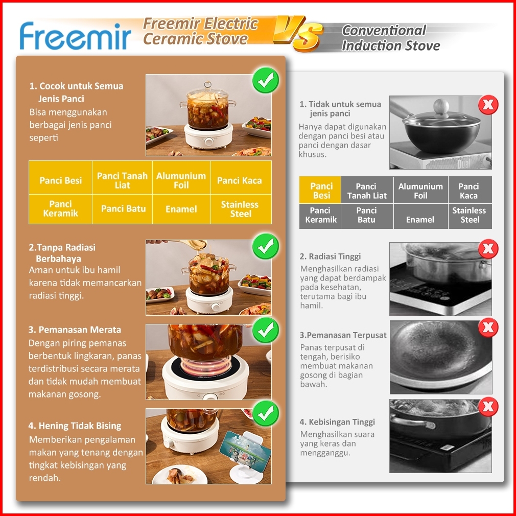 Sale Freemir Kompor Listrik Keramik Mini Kompor Induksi Pemanasan Cepat Bebas Radiasi Panel Kaca Mikrokristalin Garansi
