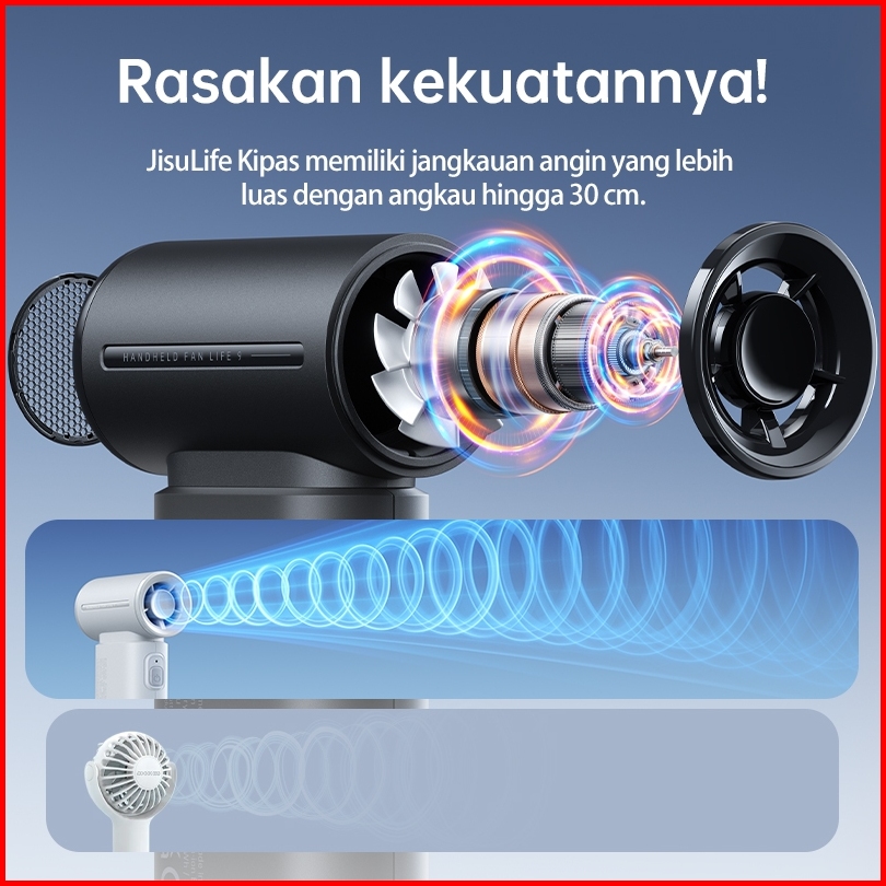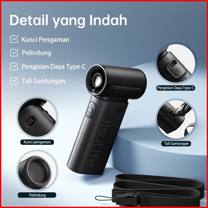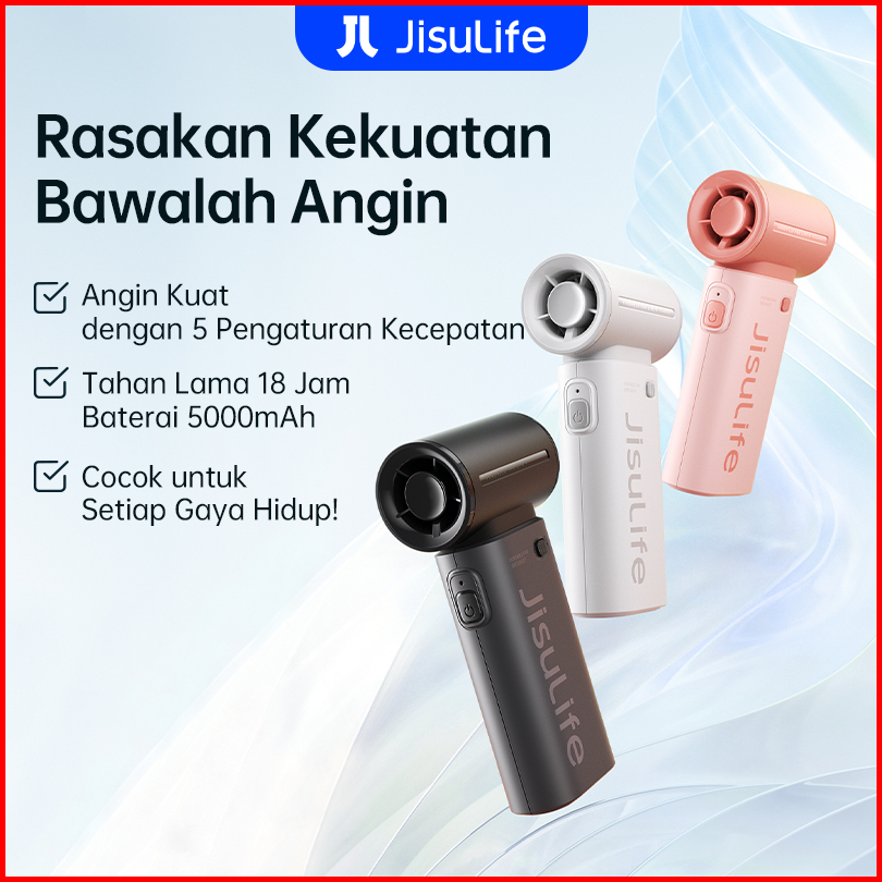 Jisulife Kipas Angin Mini Portable Pengumpul Angin Turbo 5000mah Dengan Daya 5 Tingkat Pengaturan Angin Kencang Yang Dap