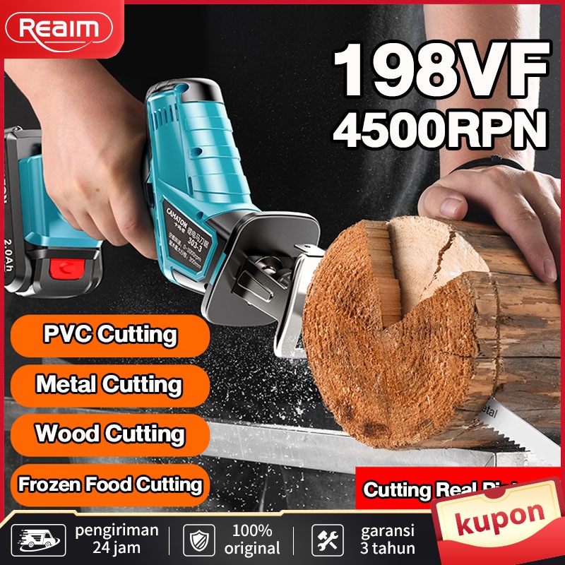 Mini Chainsaw 198V Cordless Reciprocating Saw Cordless Chainsaw Mesin Gergaji Besi Kayu Portable Gergaji Rantai Mini Por