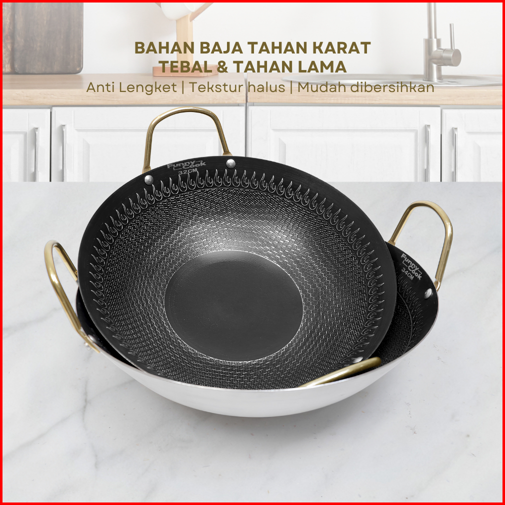 Paket Blunding Funkoo Wajan Stainless Hitam Motif Sarang Lebah Anti Lengket Ukuran 26cm Dan 32cm