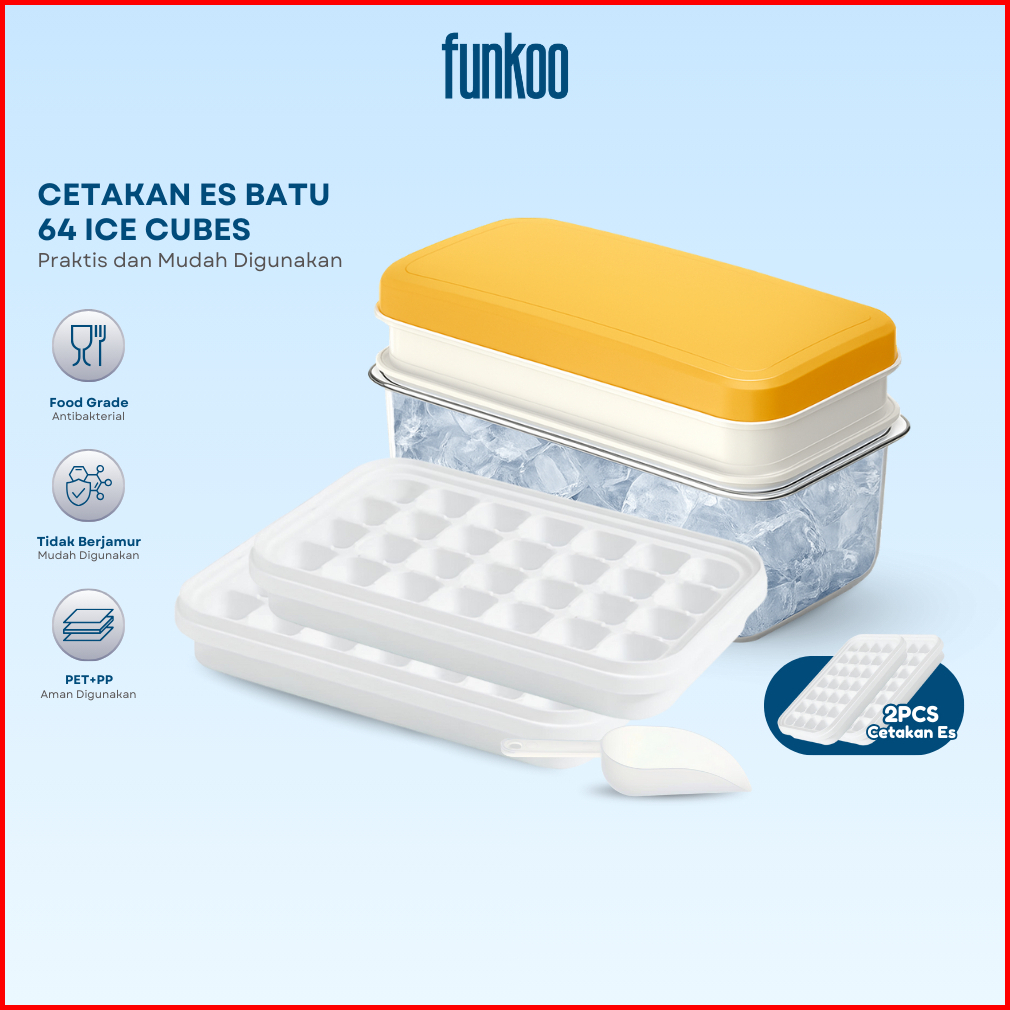Funkoo Cetakan Es Batu 64 Grid Cetakan Es Batu Press Mode Ice Cube Container Ice Cube Maker