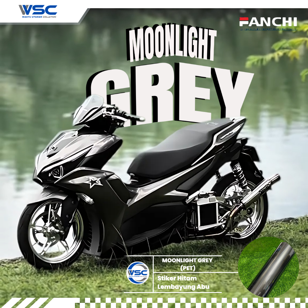 Stiker Skotlet Motor Moonlight Grey PET Hitam Lembayung Abu Abu Glossy Premium Wrapping Lebar 50 CM