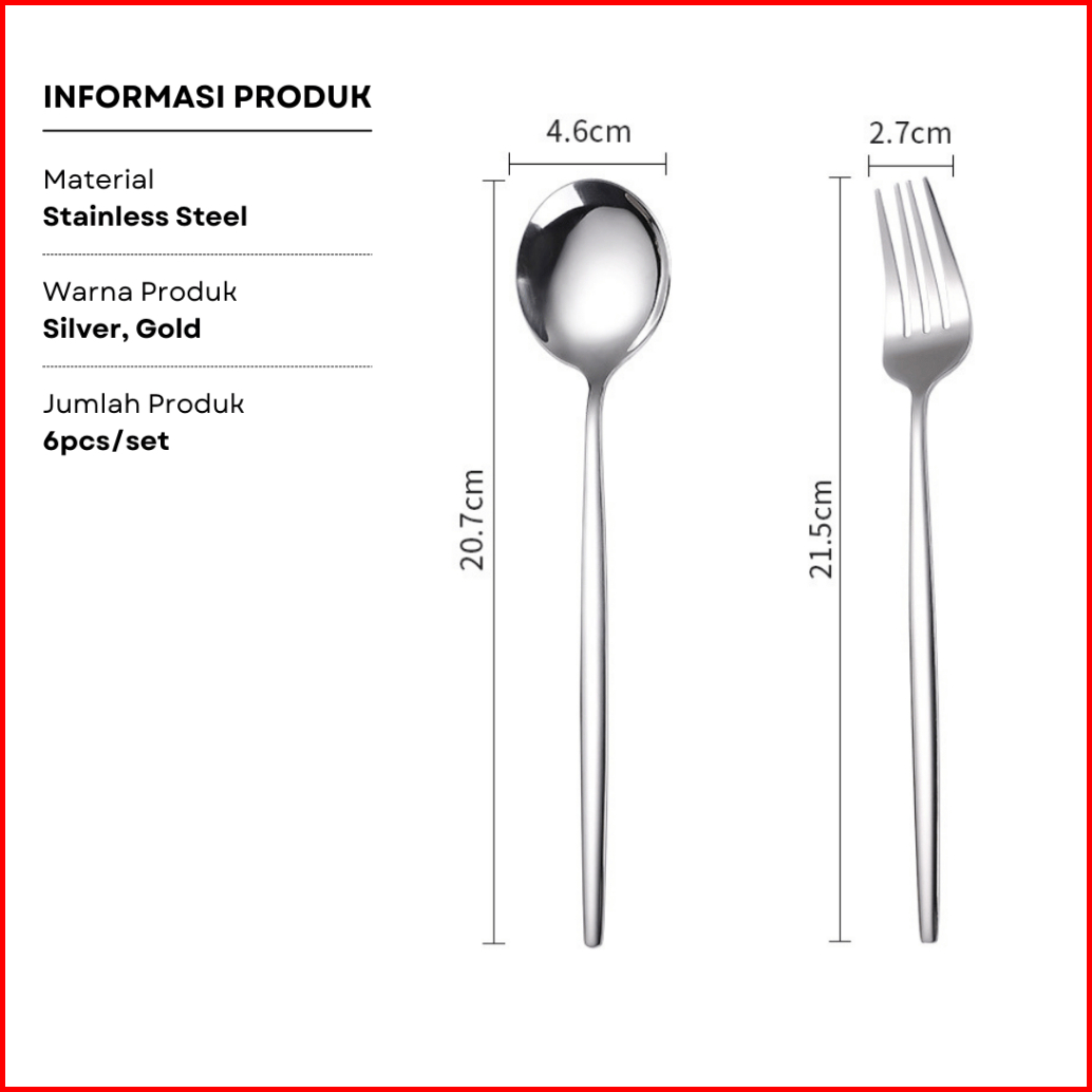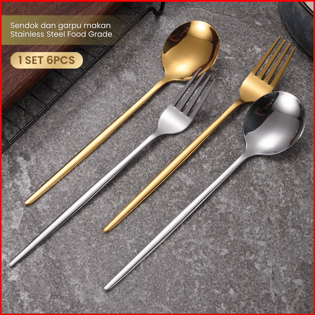Funkoo Sendok Garpu Stainless 6pcs Sendok Garpu Stainless Steel 304 Sendok Garpu Korea Premium Tebal