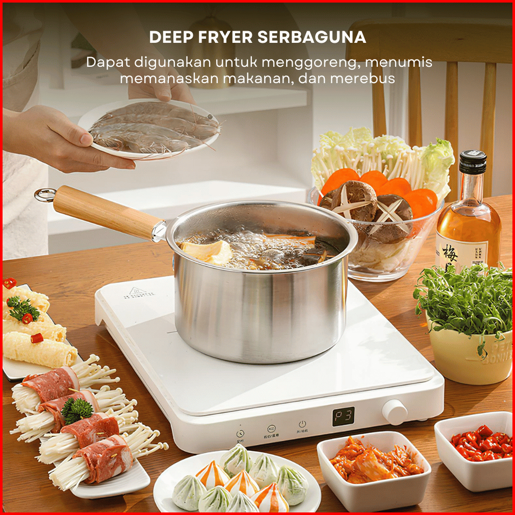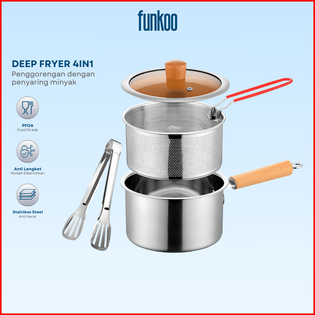 Funkoo 18cm Deep Fryer Stainless Steel Deep Fryer 4 In 1 Gagang Kayu Premium Deep Fryer Serbaguna